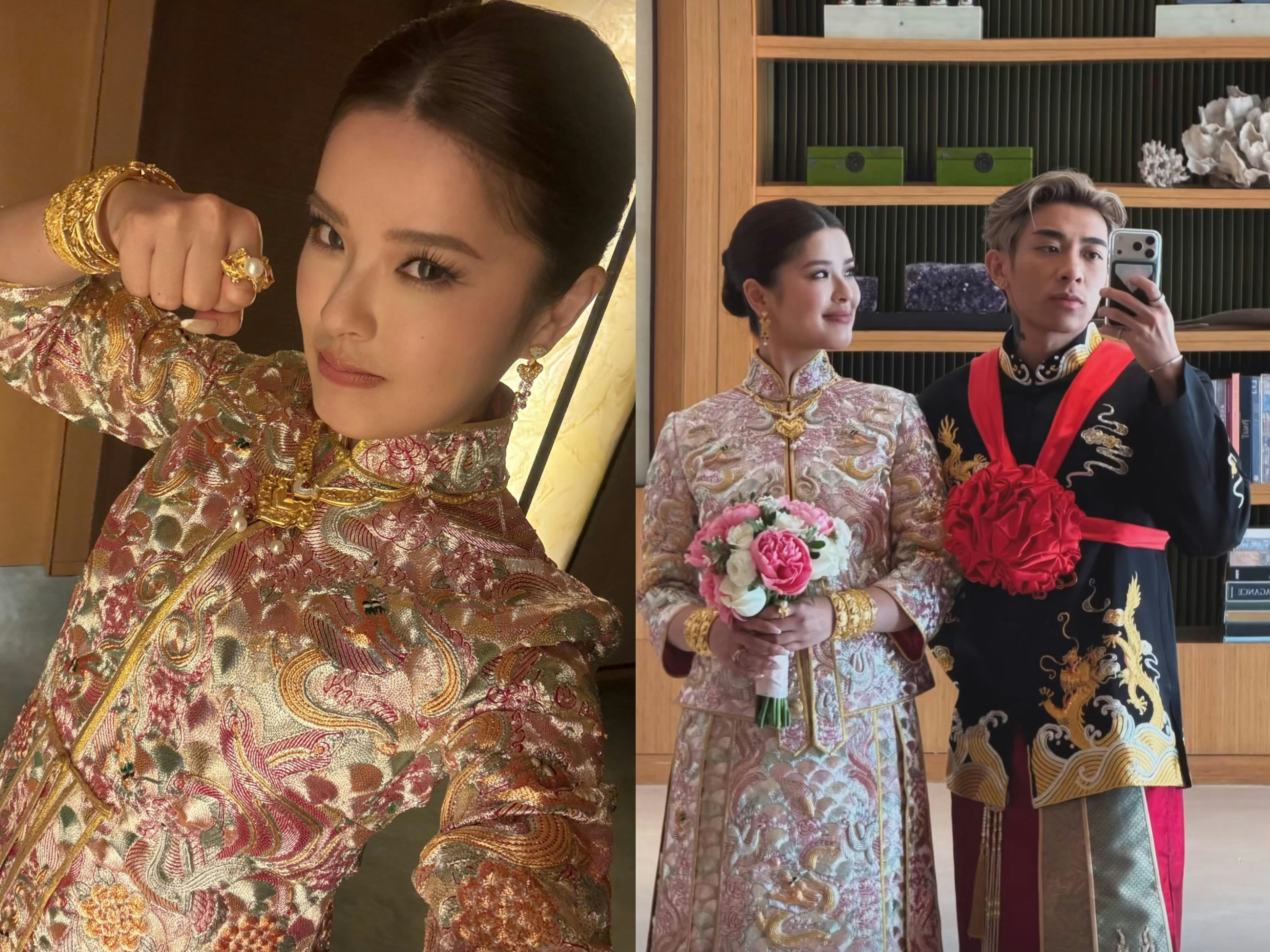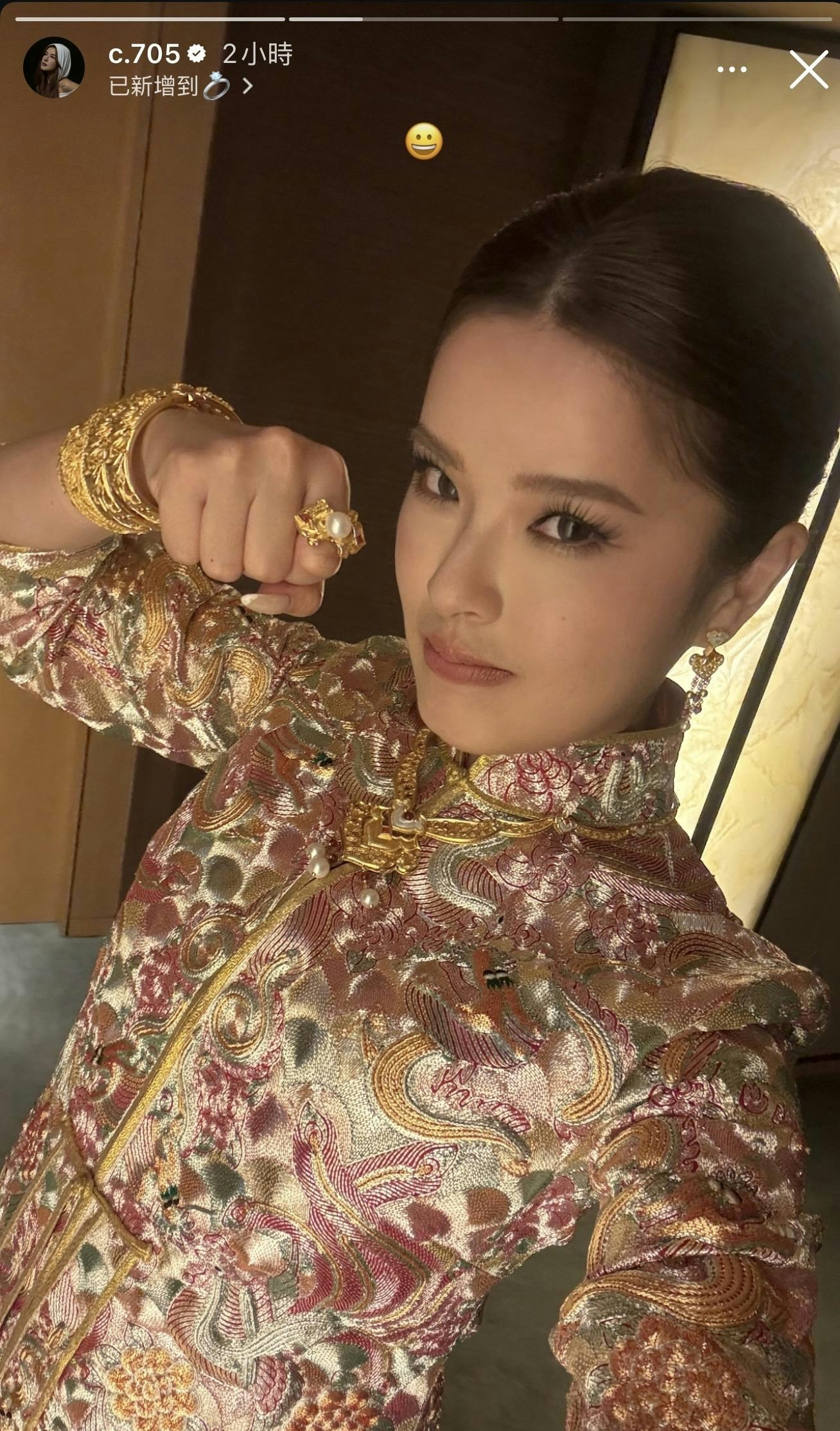 Tyson Yoshi與Christy 繼今年7月於意大利莊園舉行一連三日的夢幻婚禮後,今日(18日)在港補擺中式婚宴!非常有型!(threads照片)Tyson Yoshi與Christy 跟足傳統儀式,穿上中式禮服, 穿上最高級別 「褂皇」,整件裙褂均由金銀線覆蓋表面,看上去金碧輝煌,炫彩奪目,凸顯新娘典雅的氣質,加上手戴三對龍鳳鈪,充滿貴氣。而Tyson Yoshi亦穿上長袍馬褂,非常有型。 二位好有孝心!(IG截圖) 貴氣十足!(截圖) 有型!(截圖)