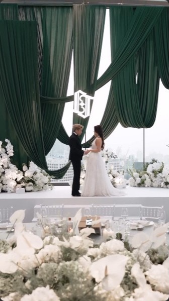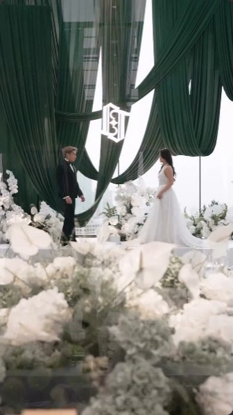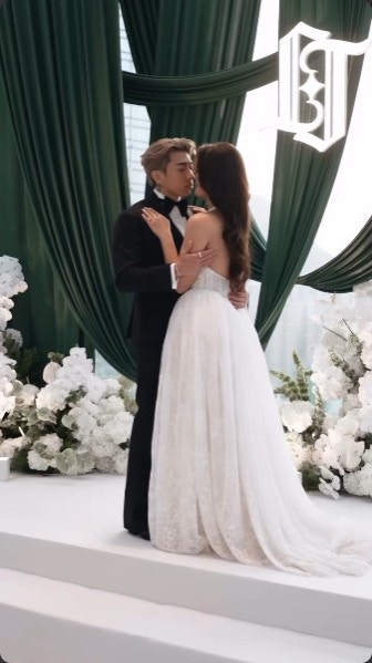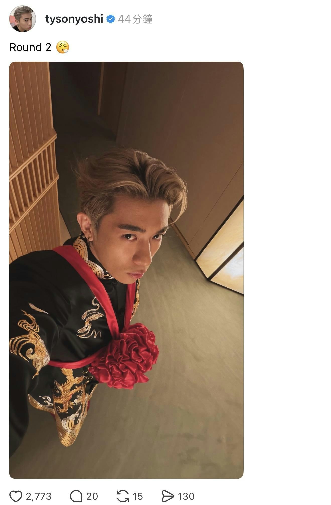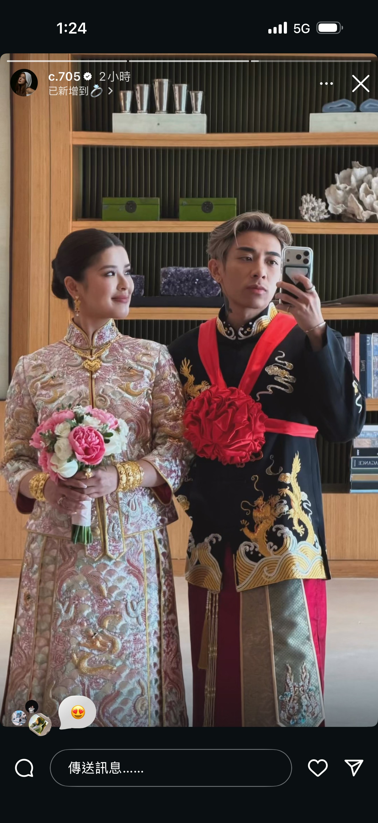 除了補擺中式婚禮外,Tyson Yoshi更在社交平台轉發了與Christy的婚紗照。片中見到Tyson Yoshi與Christy在宴會的台上走向對方,之後再手拉手一起走向鏡頭,簡直就是「甜到漏」,好比一對「神仙眷侶」。