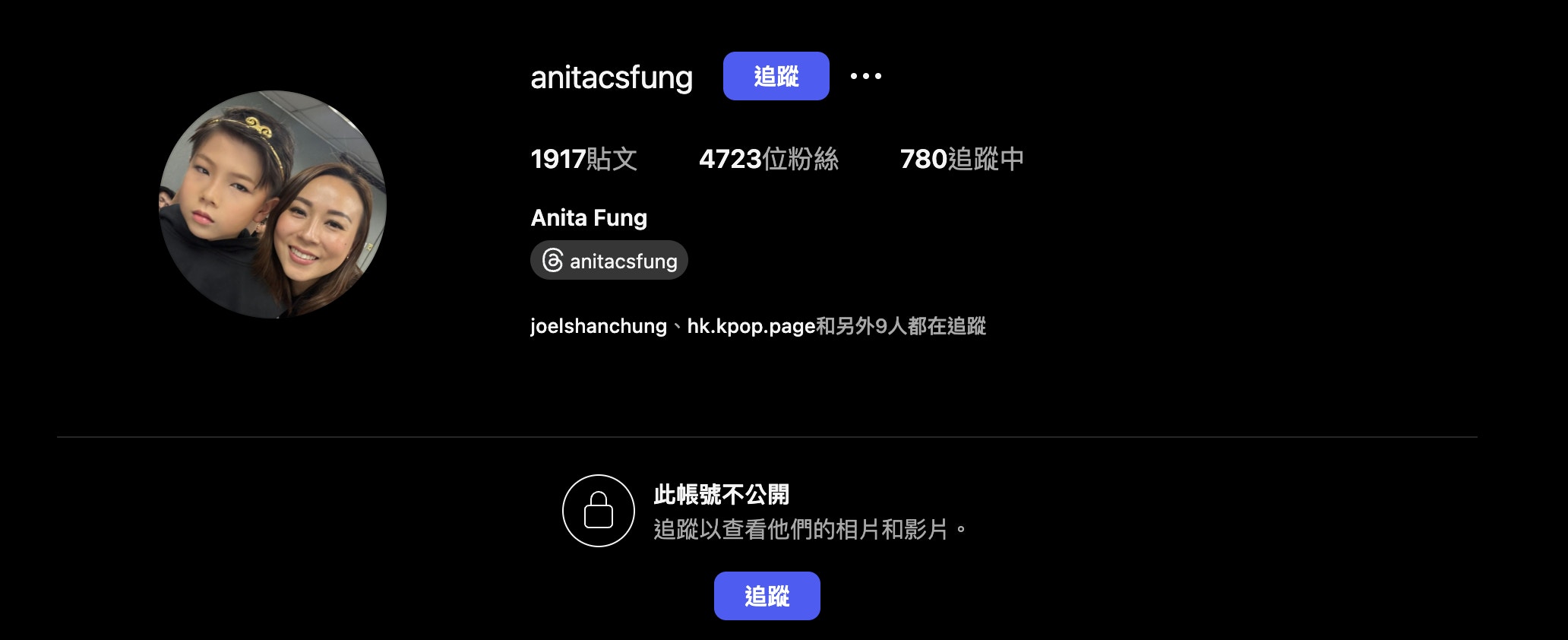 蘇永康太太 Anita 及兒子 Jazz 則在今日中午將其 Instagram 帳戶轉為不公開狀態。(IG截圖)