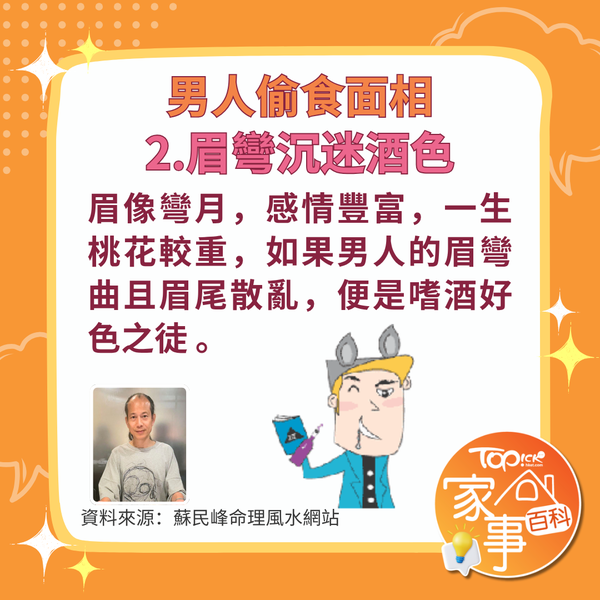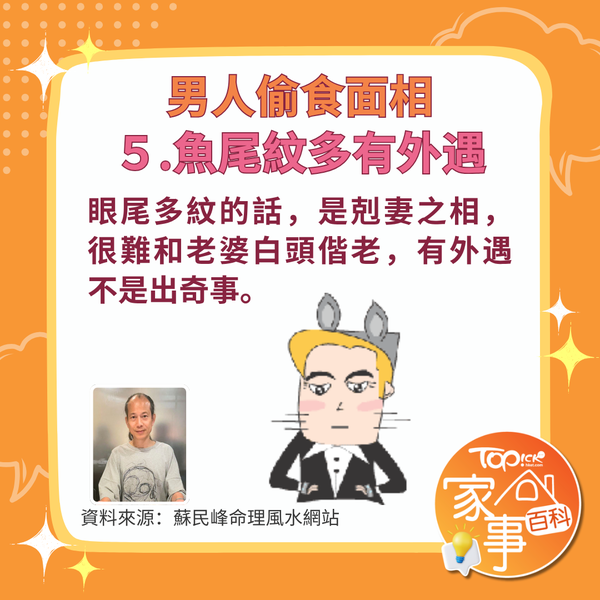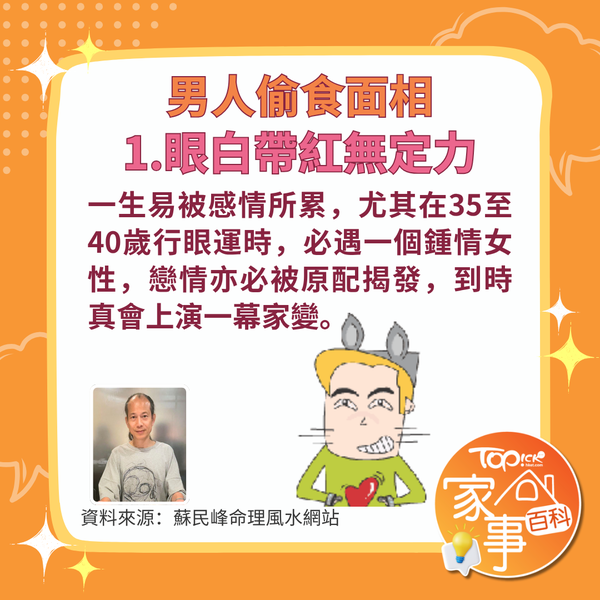 【玄學家/蘇民峰/偷食面相】男歡女愛是自然不過的事,但如果已家有嬌妻或好老公,仍心郁郁找機會外出偷情,就是意志力不足的表現,在情在理也是不當行為。原來偷食男女有樣睇,玄學家蘇民峰師傅指出,如果面相擁有愈多以下介紹的特徵,就愈容易發展不倫戀!