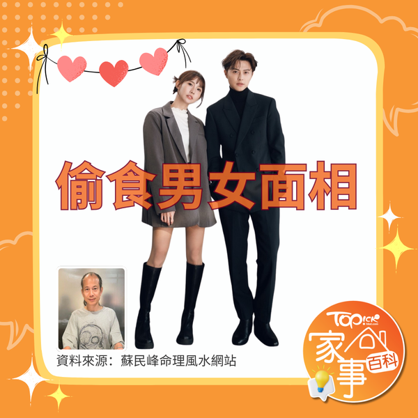【玄學家/蘇民峰/偷食面相】男歡女愛是自然不過的事,但如果已家有嬌妻或好老公,仍心郁郁找機會外出偷情,就是意志力不足的表現,在情在理也是不當行為。原來偷食男女有樣睇,玄學家蘇民峰師傅指出,如果面相擁有愈多以下介紹的特徵,就愈容易發展不倫戀!