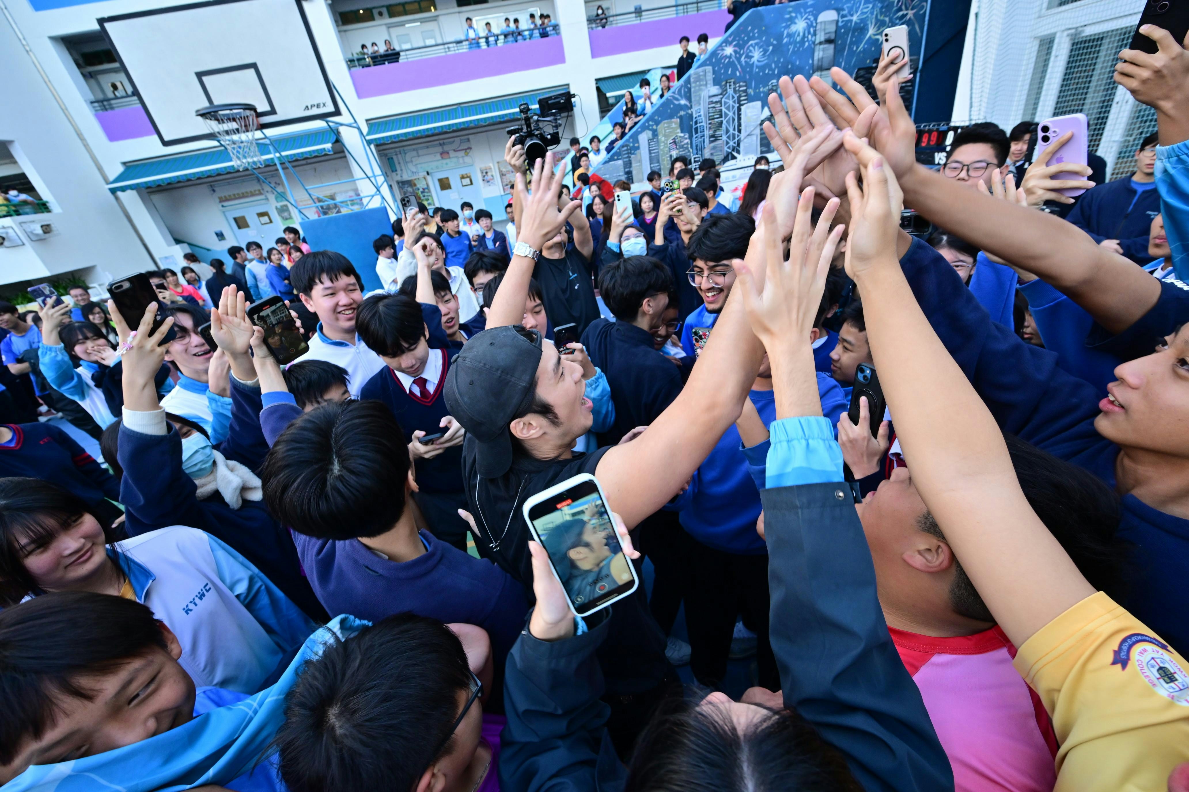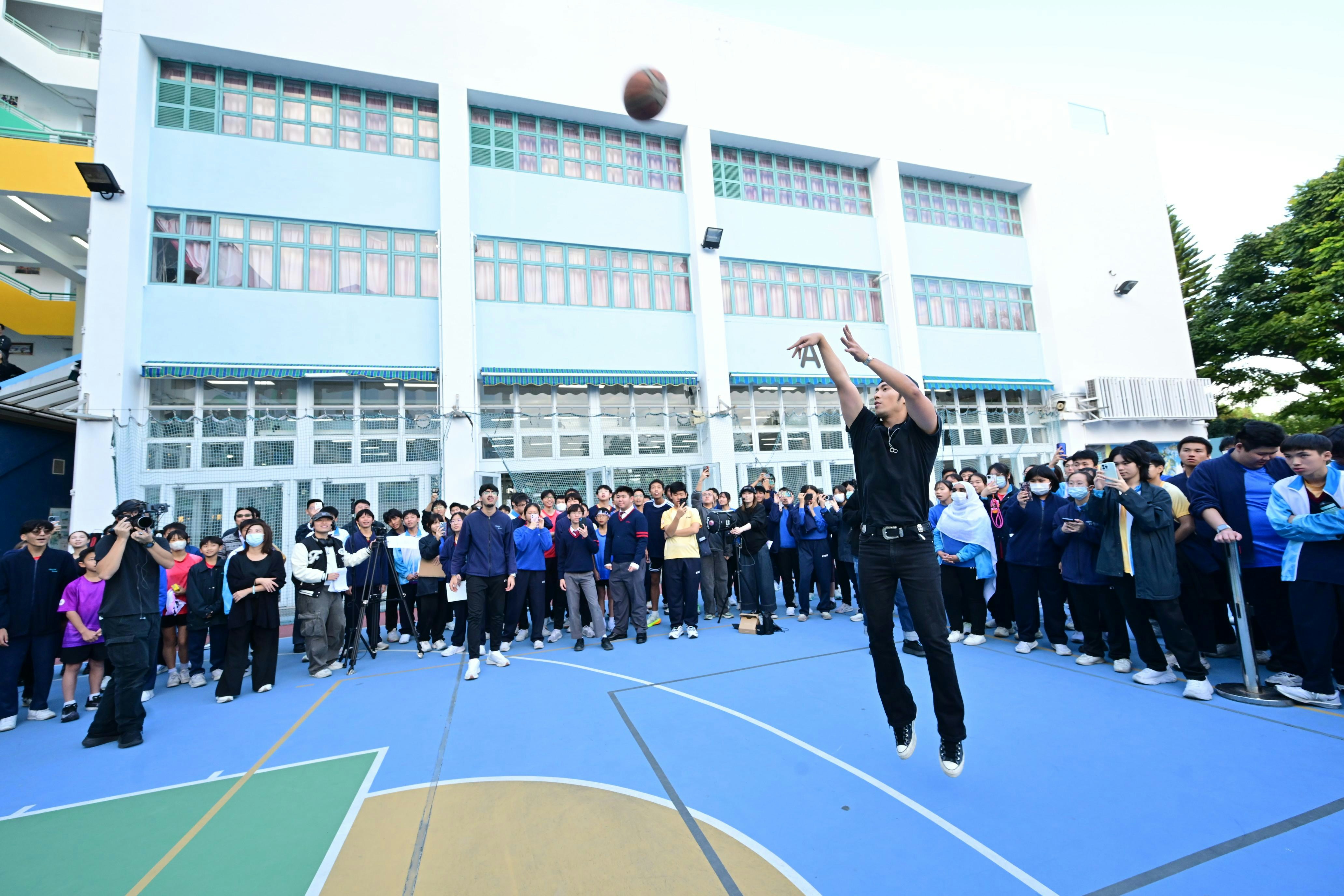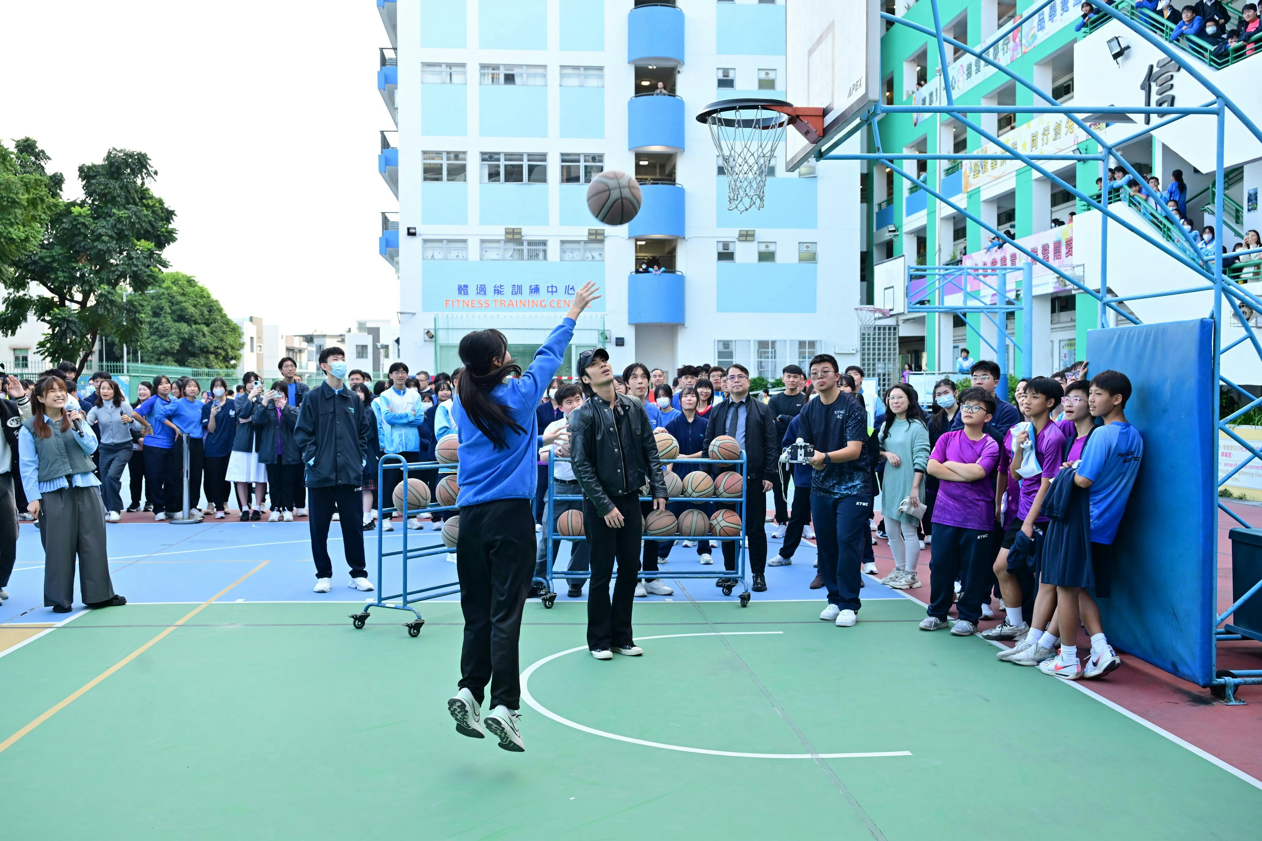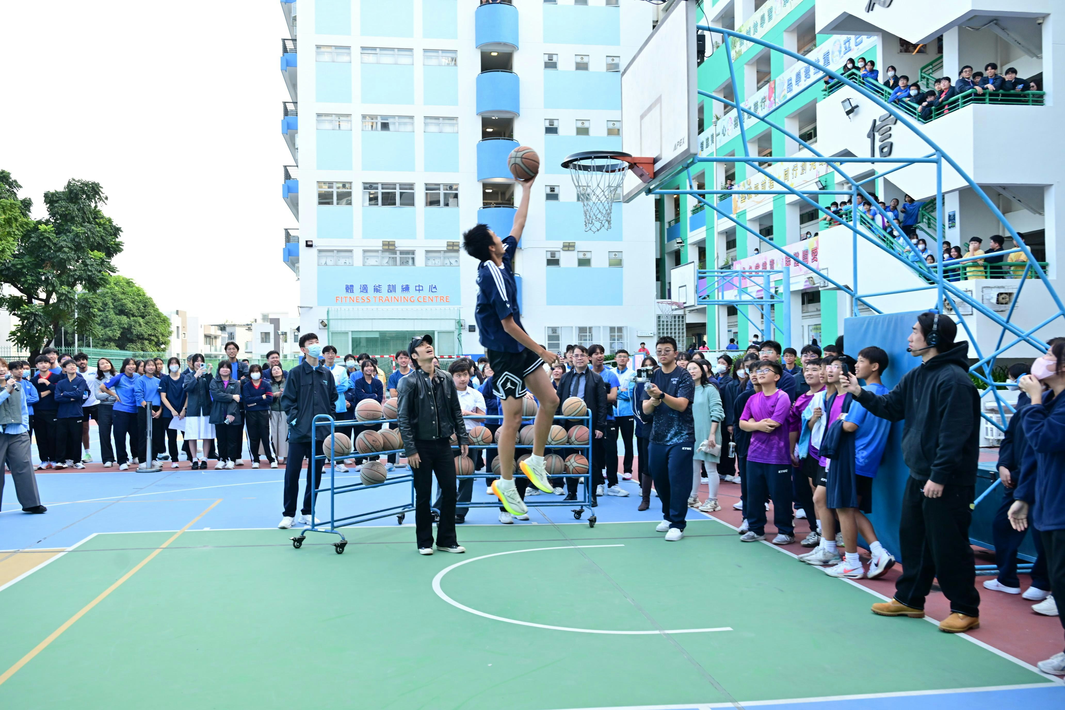 緊接來到今年叱咤校園巡演的重頭戲,Yan Ting領軍「百人挑戰」之「百球入魂」——100人合力挑戰射入100個籃球。一眾學生及阿酸完成99個入球之後,由Yan Ting負責挑戰射終極一球「三分波」。儘管面對壓力與不確定性,Yan Ting堅持嘗試逾20球。最終在全場同學熱烈鼓勵下,Yan Ting成功命中第100球,贏得全場同學歡呼,圓滿達成「百球入魂」這項挑戰,亦完美發揮今年叱咤主題「難先要你做」的精神。