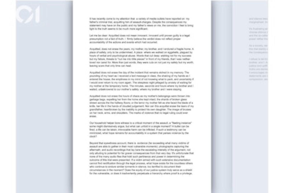 女兒發千字文控訴任何法律判決都無法抹去這些暴力的痕跡