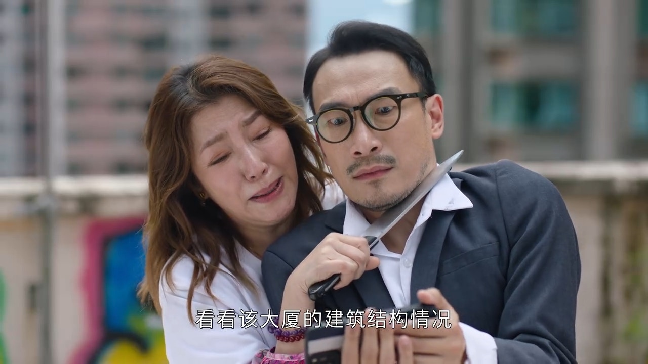 王敏奕與吳業坤去報道一宗業主立案法團的新聞時,遇上業主關寶慧拒付高價維修費,更持刀挾持疑似中飽私囊的法團代表泰臣。(影片截圖)