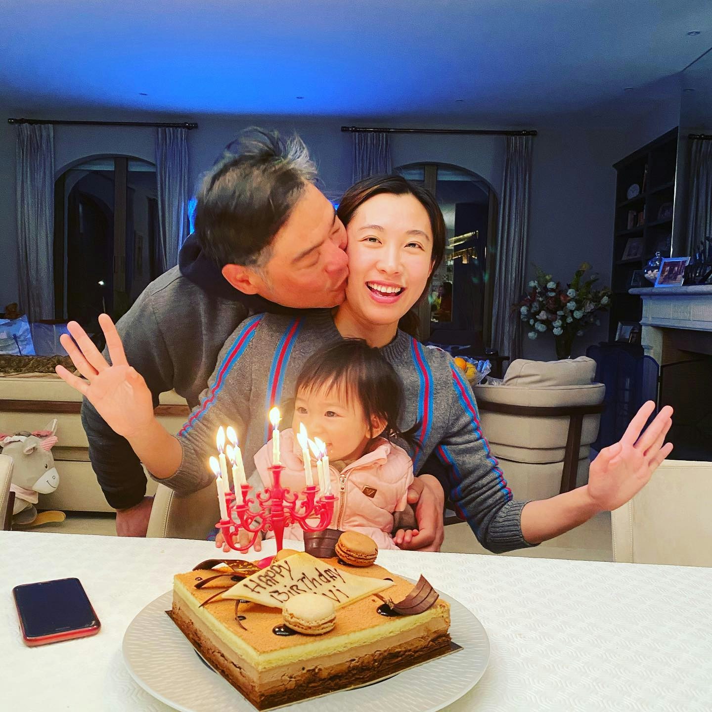 李美慧同一對仔女為老公曾文豪慶祝生日。(IG@vivi326)