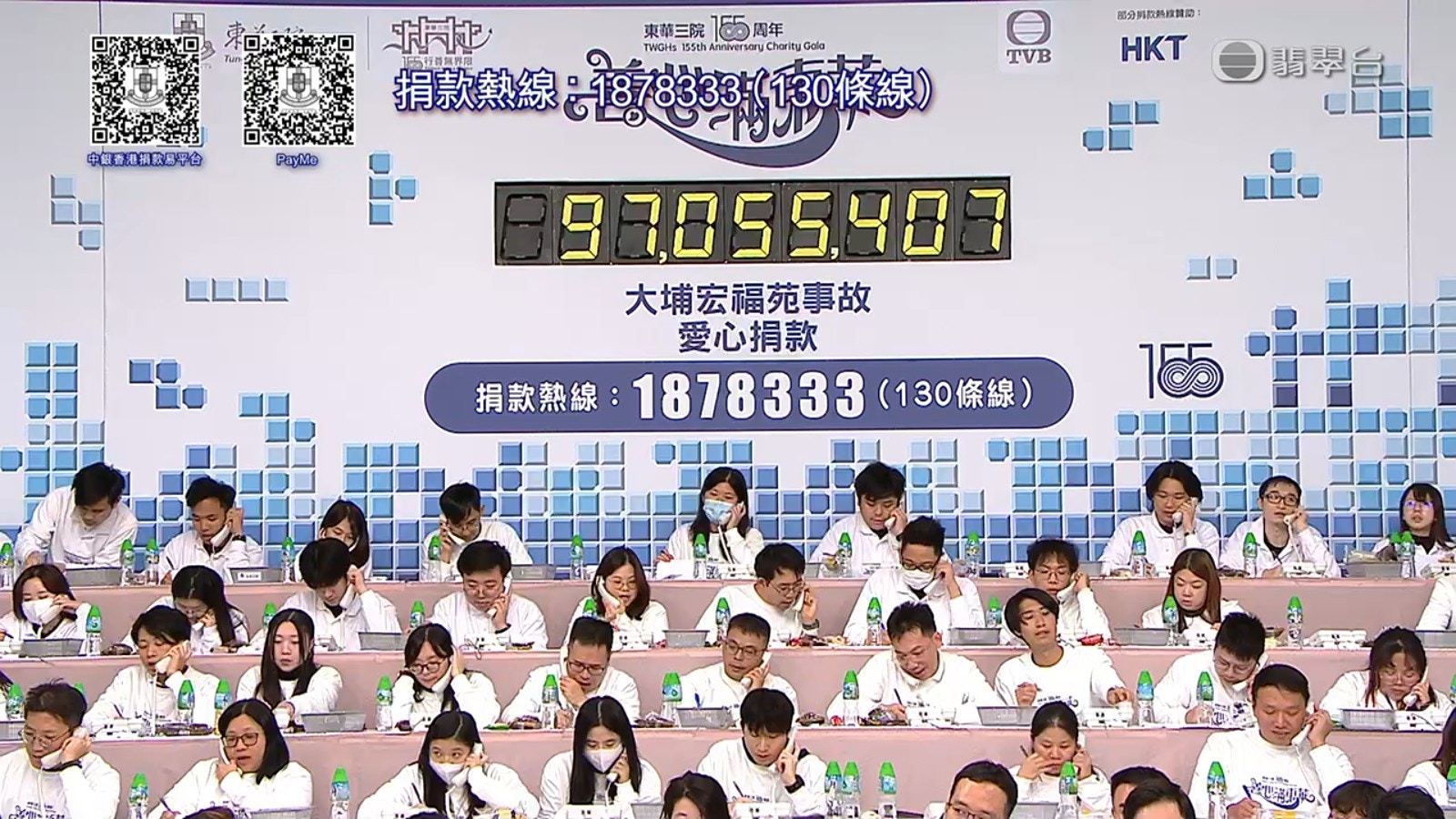 曾志偉說:「我最想多謝主席及東華三院咁多位董事,你哋喺兩日短短嘅時間決定,將你哋每年最大嘅籌款之夜,變為今晚大埔宏福苑事故愛心捐款之夜,呢個行動係感動到好多人,感動到好多廣大嘅愛心市民,先可以11點幾去到9千7百幾萬,呢個行動唔止感動所有人,我自己都有感動到,我想自己都出少少綿力,現在我想我本人,聯同文化公司共捐300萬,湊夠變為1億。」