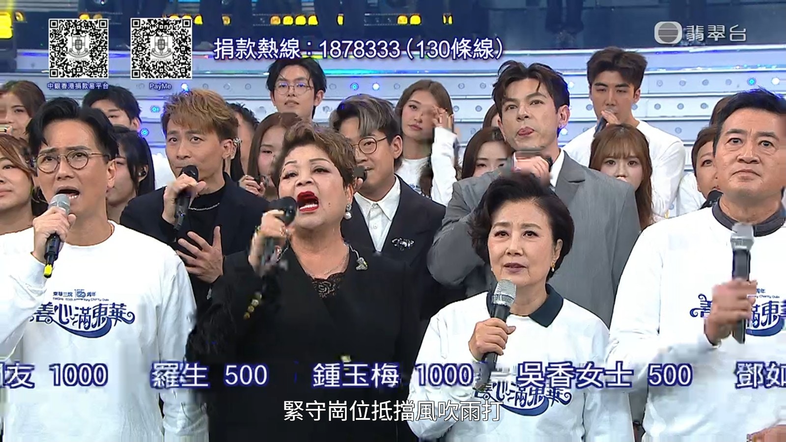 曾志偉現身前亦有感動時刻,肥媽Maria Cordero率領現場藝人及歌手一齊合唱《真的英雄》,更特意改寫歌詞,向一眾前線救人的英雄,以及為這場火災出心出力的每一位市民致敬,獻唱期間,司儀鄧梓峰、何沛珈、區永權等一直強忍淚水,一向感情豐富的肥媽更忍不住落淚,在鏡頭前不停用手抹眼淚,場面感人。