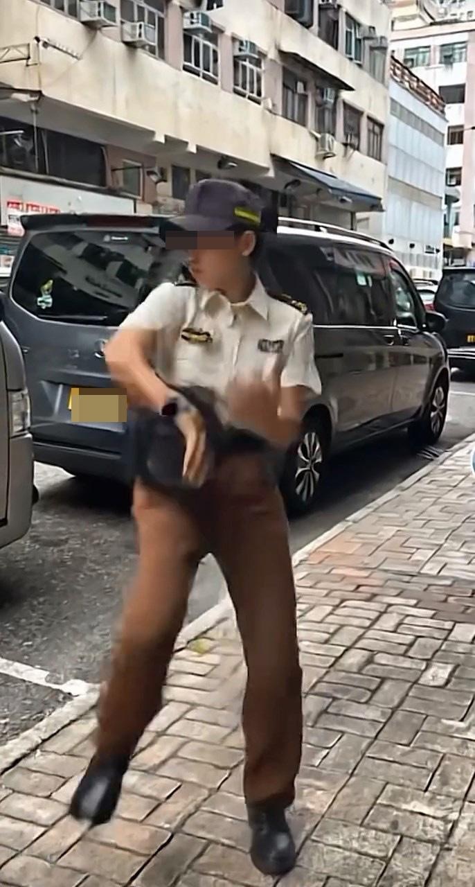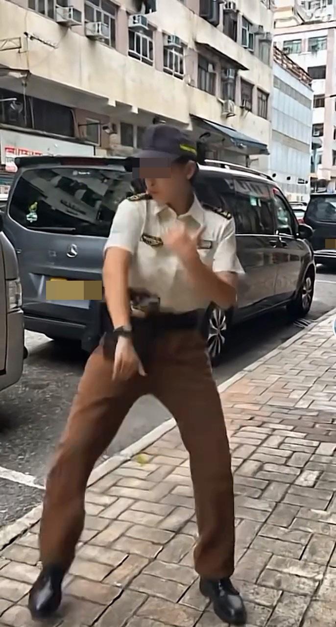 影片長6秒,1名年輕女子穿上寫有「Police」、疑似中文字「警察」的戰術背心,戴上印有疑似警徽的深色「鴨嘴帽」,腰纏疑似裝有手鎗的鎗袋,面露笑容在街頭跳舞,且不時大動作擺動臀部及腰部,看似樂在其中。