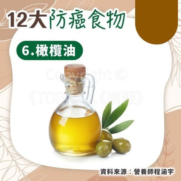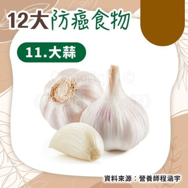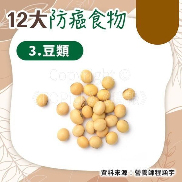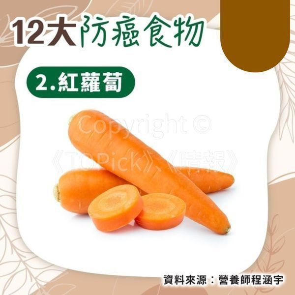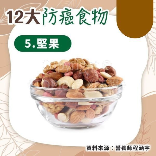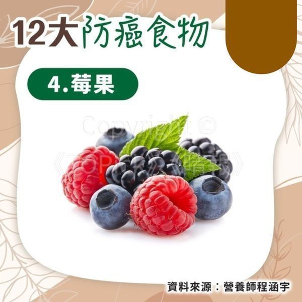 台灣營養師程涵宇亦曾指出,有科學證據研究顯示,以下12種抗癌食物可有助降低癌症風險,建議大家多食用五顏六色的蔬果類天然食物、養成良好生活習慣,避免癌症找上門。