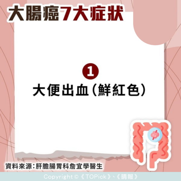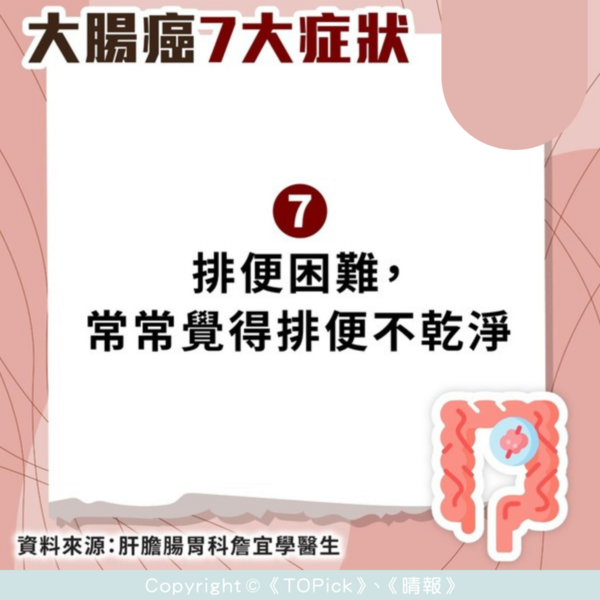 詹宜學亦曾列出以下7大症狀,呼籲多加留意身體異狀,尤其是排便習慣轉變: