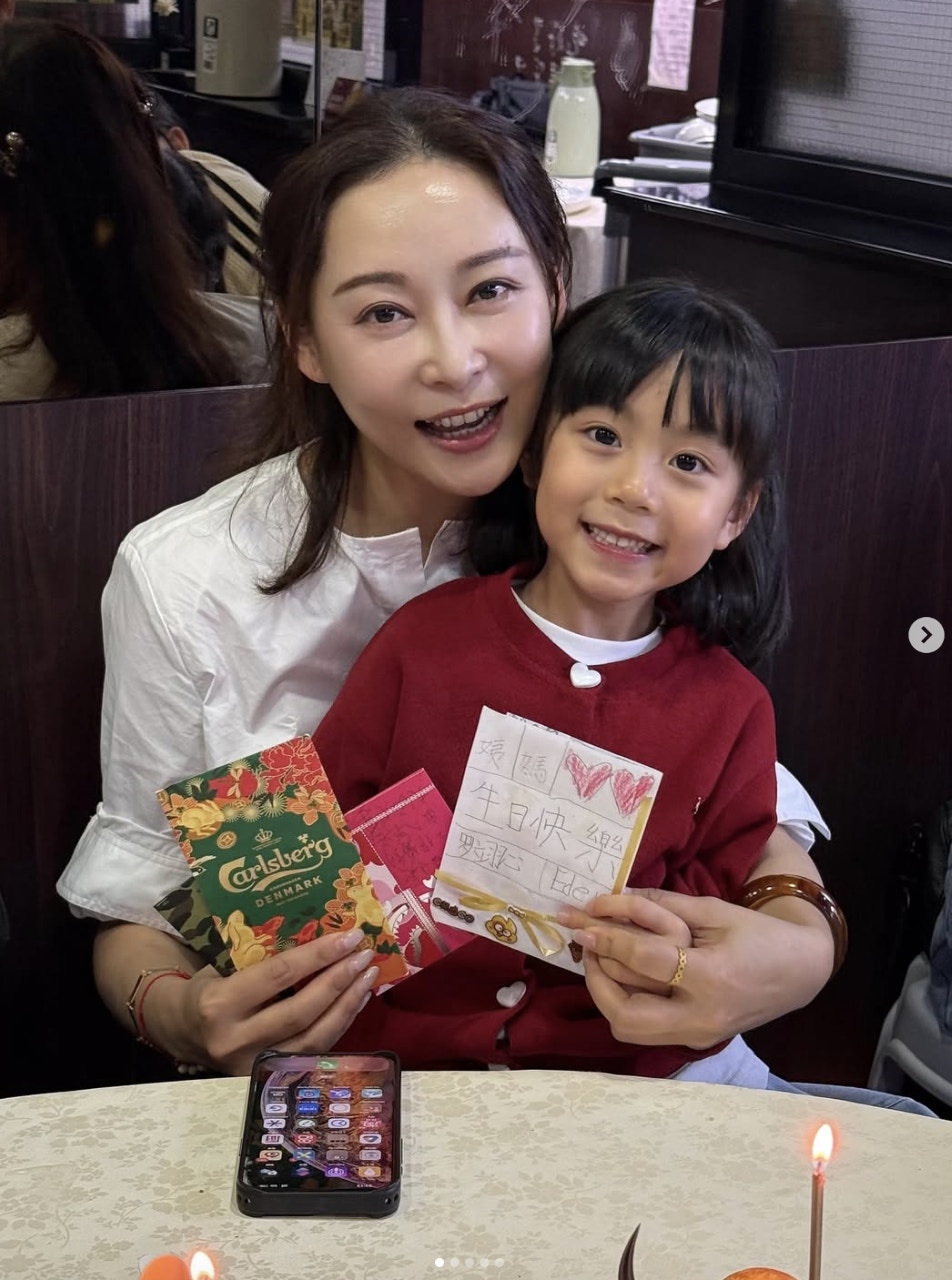 楊卓娜近日上載與家人預祝生日片段,一家人在餐廳食蛋糕慶祝生日,女兒在旁邊協助媽媽切蛋糕唱歌,錫晒媽媽,非常生性,母女感情融洽。女兒生得標緻,亭亭玉立,實在愈大愈靚女。楊卓娜笑到見牙不見眼,被愛女冧爆!