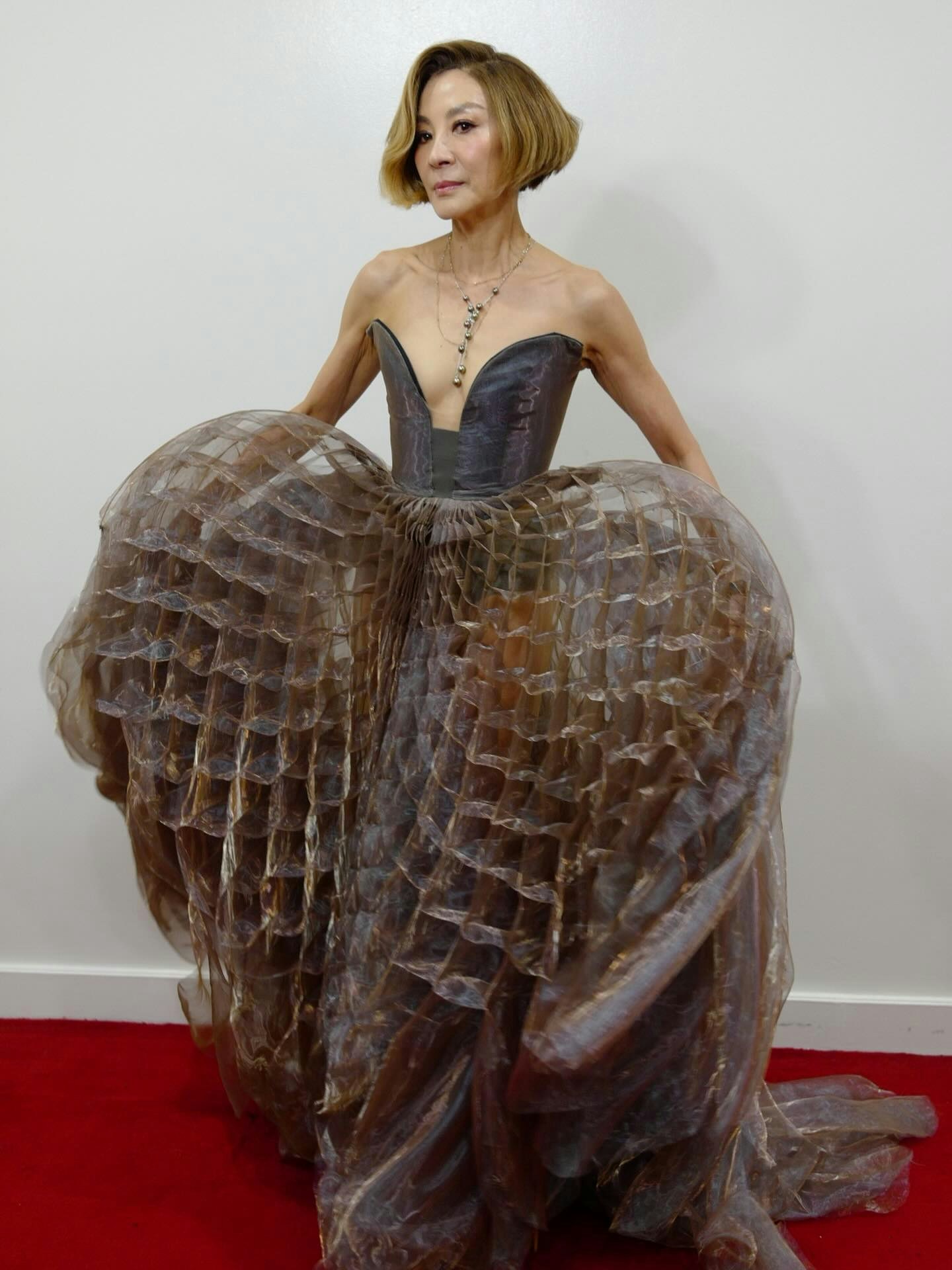 有大批網民看到楊紫瓊的造型後,忍不住指裙擺及顏色都跟牛肚極為相似,並搞笑稱其為「牛肚裝」或「多重滷味」,網民都留言表示:「救命 好似牛肚」、「媽的多重滷味」、「這衣服一言難盡」、「看著肚子很餓」、「牛肚裙」、「好前衛」、「越望越肚餓」。另外,有網民關注楊紫瓊的身形,皆因穿上露肩低胸晚裝時,頸部驚現大量青筋及鎖骨暴現,更指她現時太瘦了:「手臂肌肉很厲害 但太瘦了」、「太瘦不好看」、「為何瘦成這樣了?」。