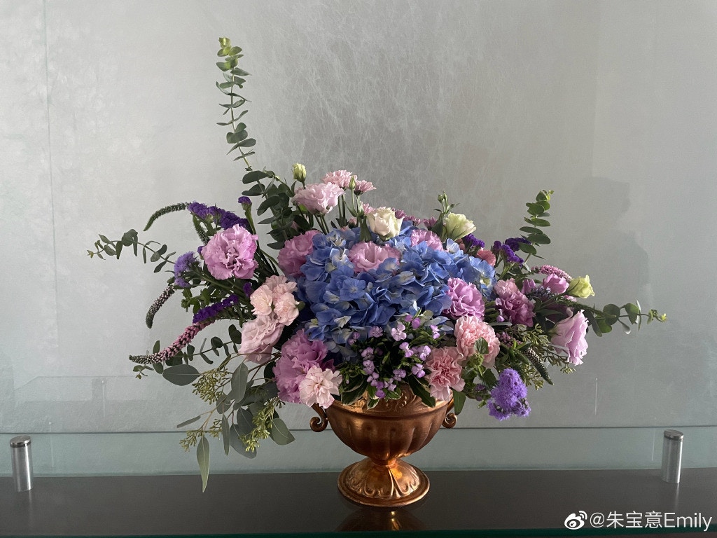 不時分享自己的花藝作品。(微博@朱寶意Emily)