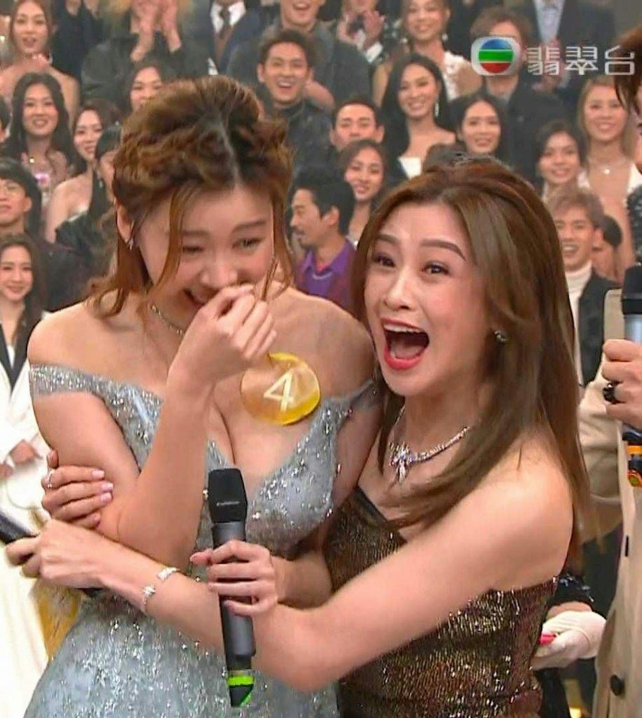 麥美恩在台慶擁抱得獎者李芷晴的畫面。(TVB截圖)