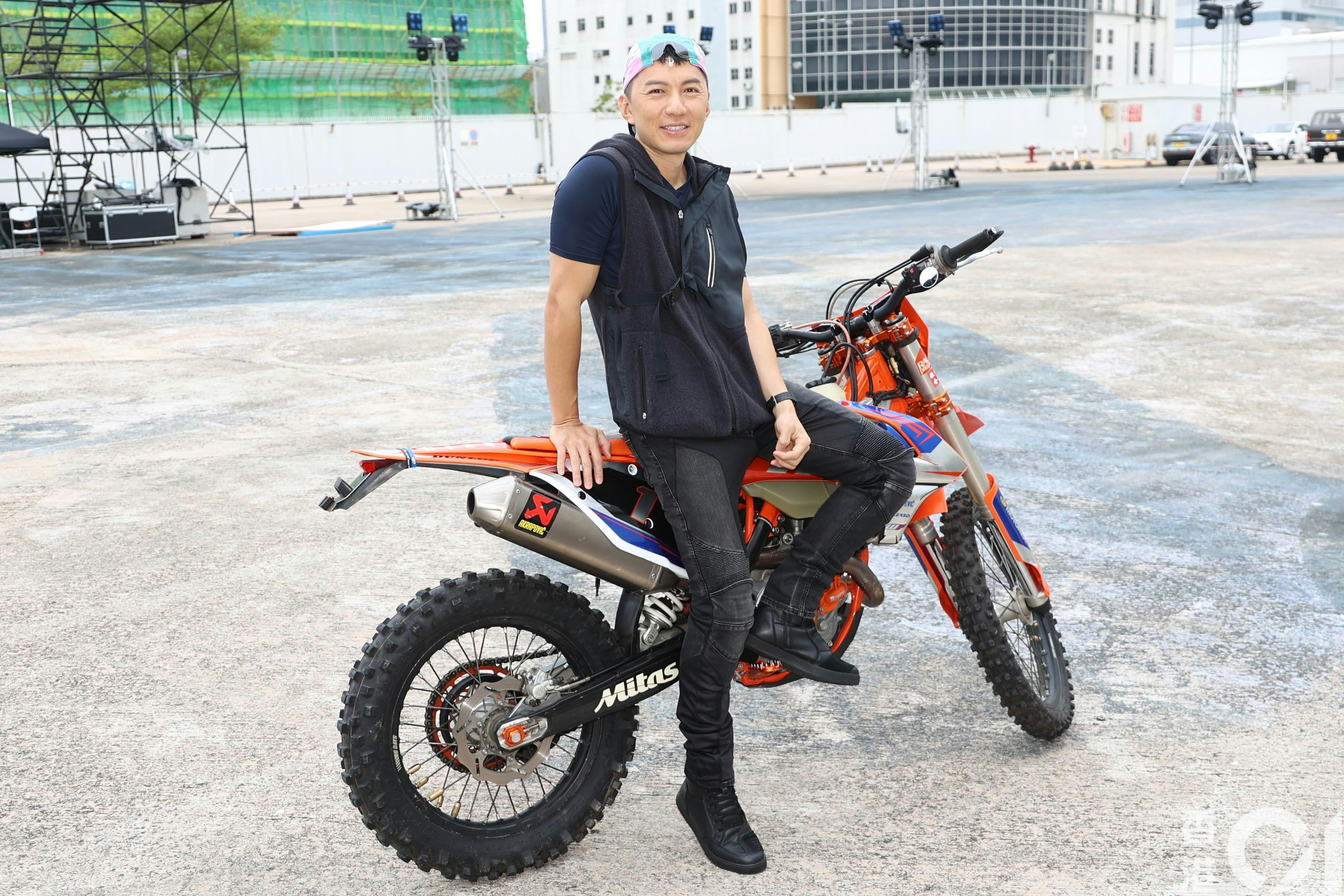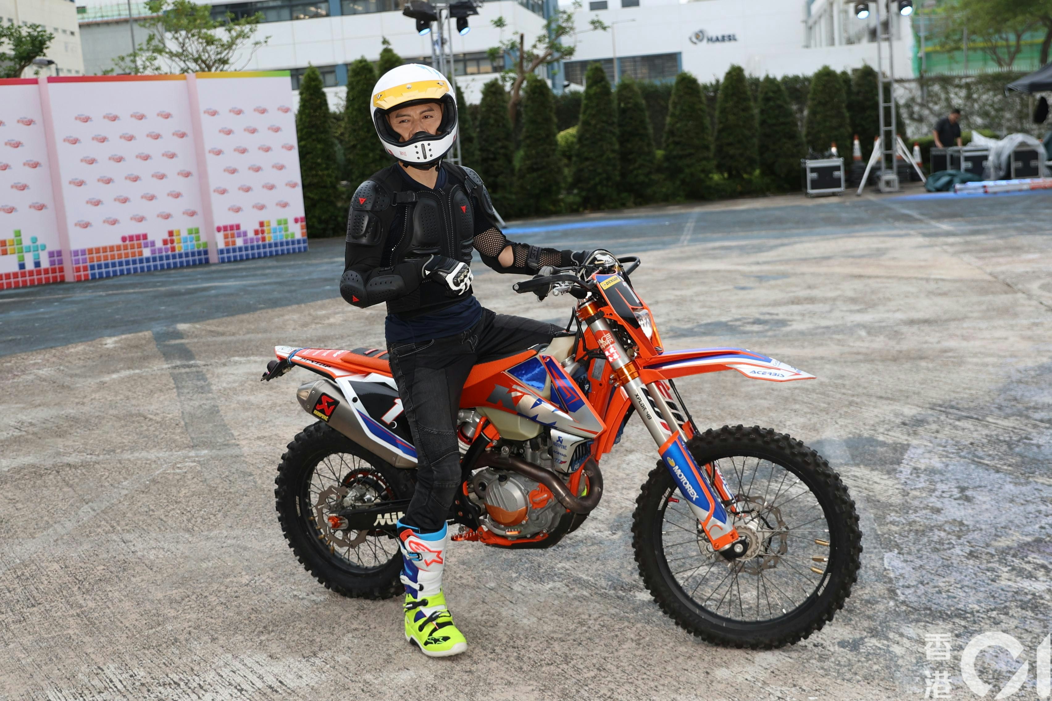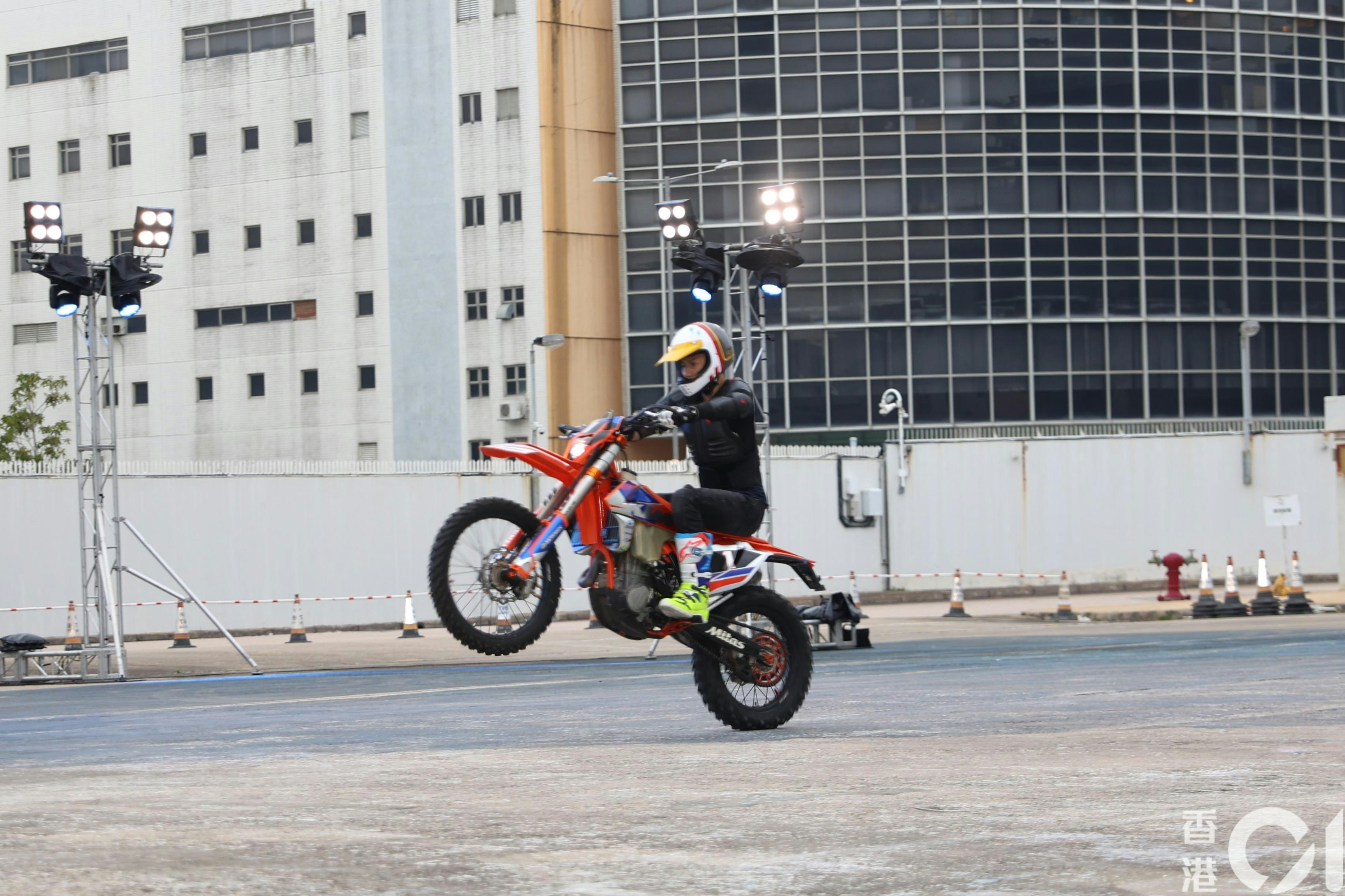 袁偉豪為《歡樂滿東華2025》電單車特技綵排訓練。(陳順禎攝)