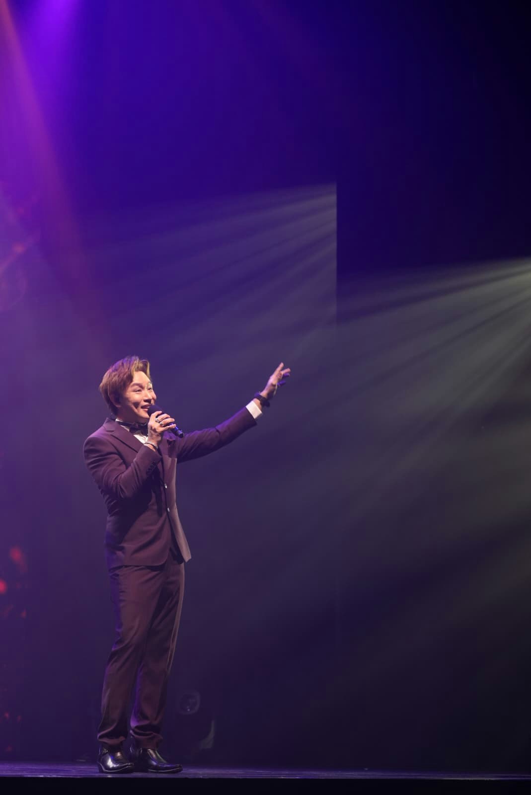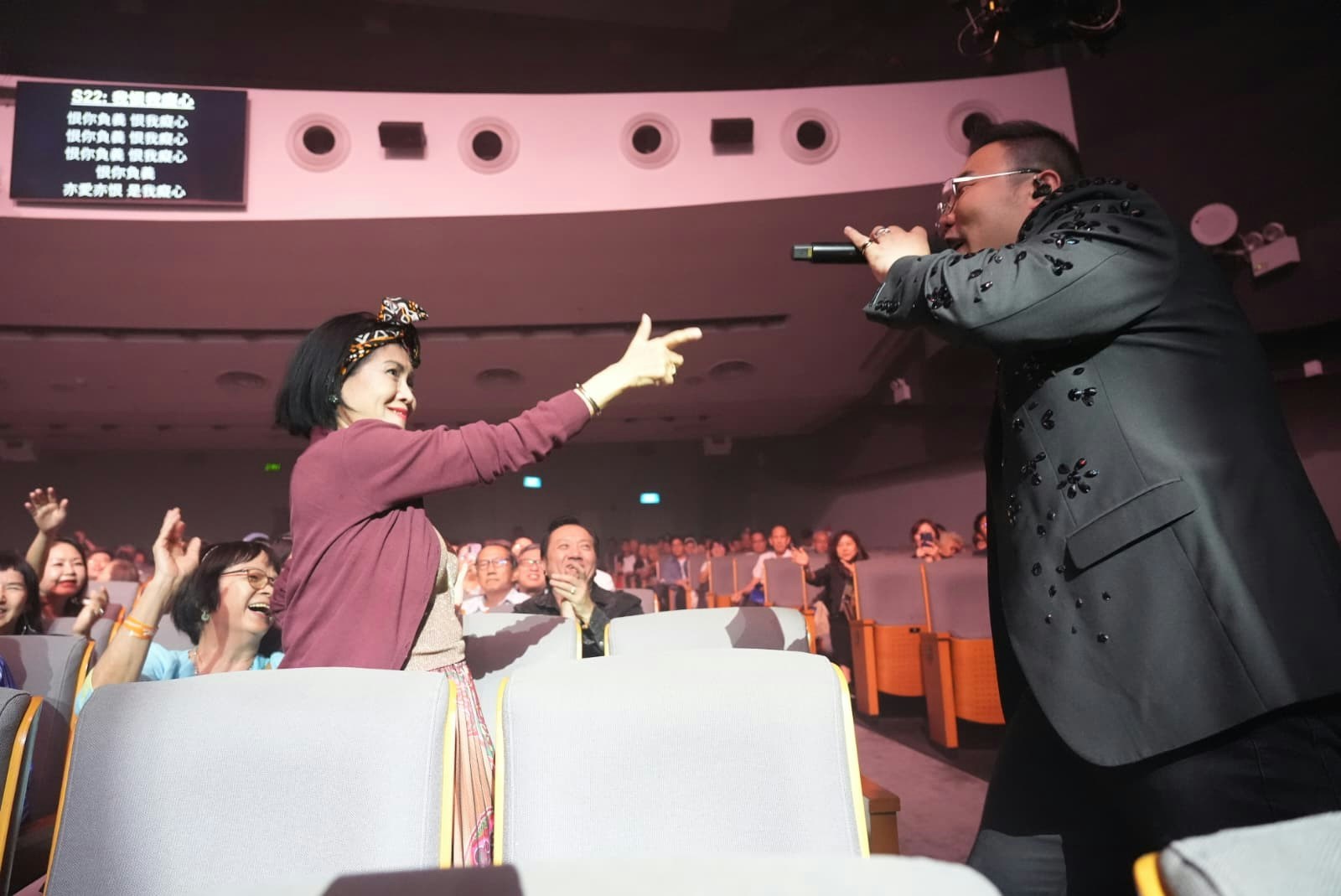 「人氣王」 Kimman演唱經典歌曲《一生何求》,《愛如潮水》,還驚喜演唱了新加坡愛國歌曲《Home》,引來全場大合唱,場面溫馨感人。(公關提供)