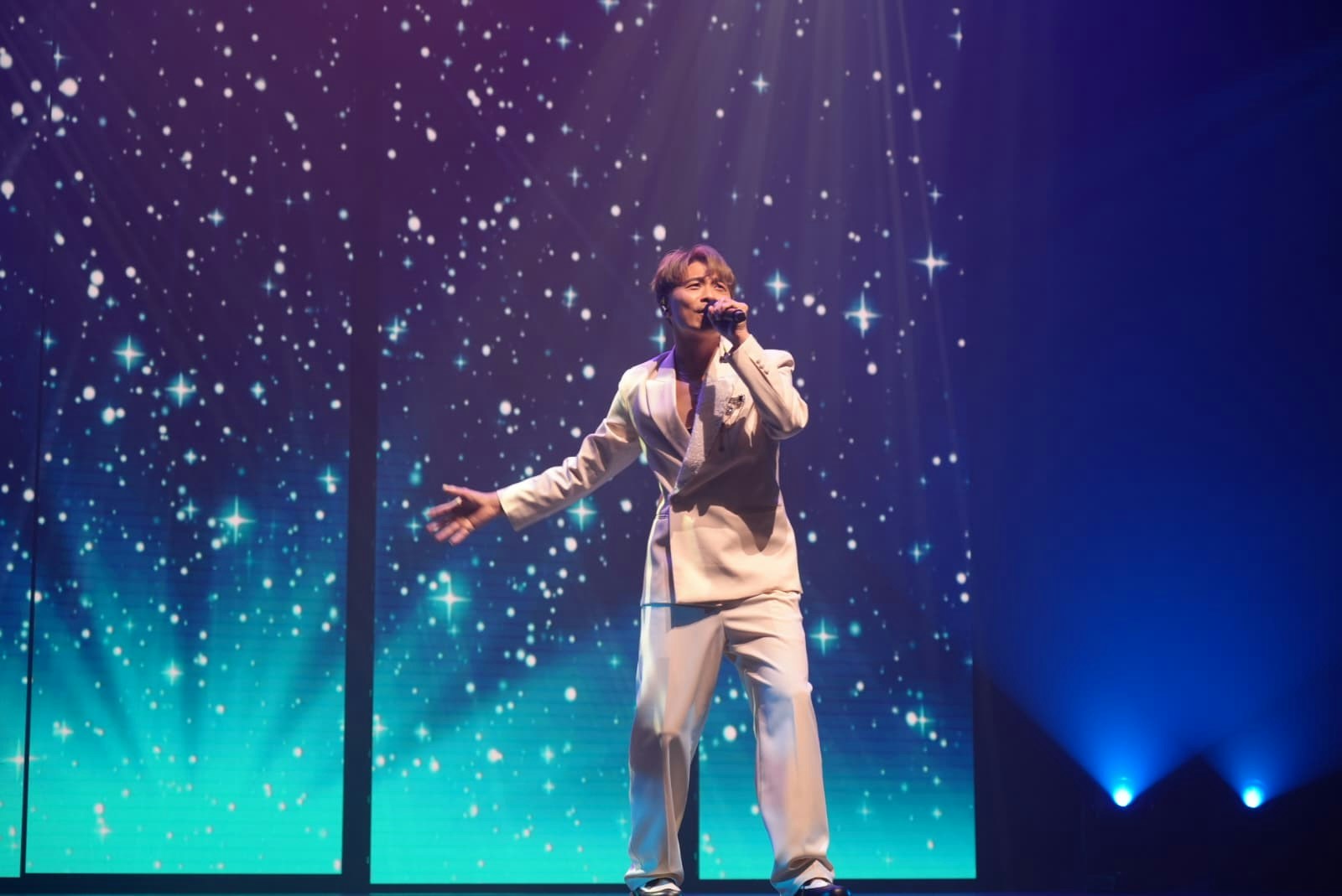 「人氣王」 Kimman演唱經典歌曲《一生何求》,《愛如潮水》,還驚喜演唱了新加坡愛國歌曲《Home》,引來全場大合唱,場面溫馨感人。(公關提供) 在壓軸篇章中,王鄭浚仁以《愛火花》再次點燃熱情,李金凱與黃劍文合唱《甲乙丙丁》,劉洋以《我恨我痴心》帶動全場齊唱。最終,黃博與支嚳儀合唱《When You Believe》,歌聲與舞台光影交織出最動人的畫面,為整場演出畫上完美句點。