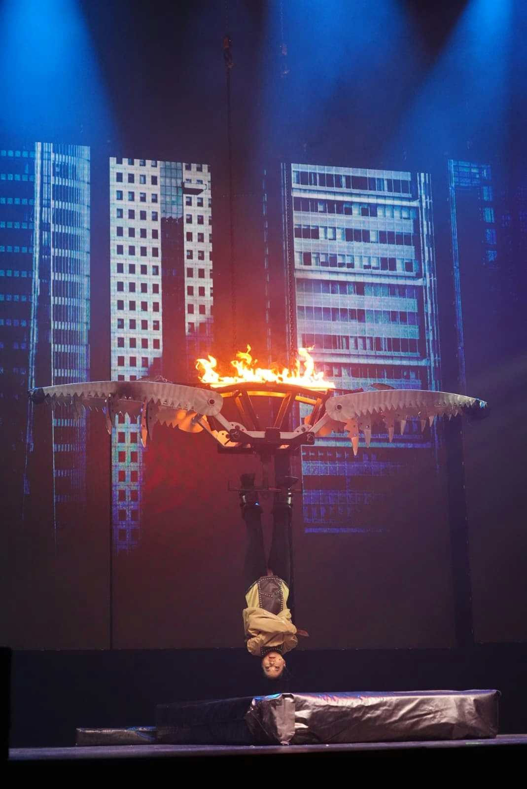 除了滿滿的經典金曲,《When You Believe 奇幻之聲》更融合精彩魔術表演。在「盼望」篇章中,Priscilla親身挑戰高空逃脫術《Jaws of Death》,於6米高空、60秒火焰倒計時中成功脫險,象徵戰勝恐懼、重燃希望,全場觀眾無不屏息驚嘆。(公關提供)