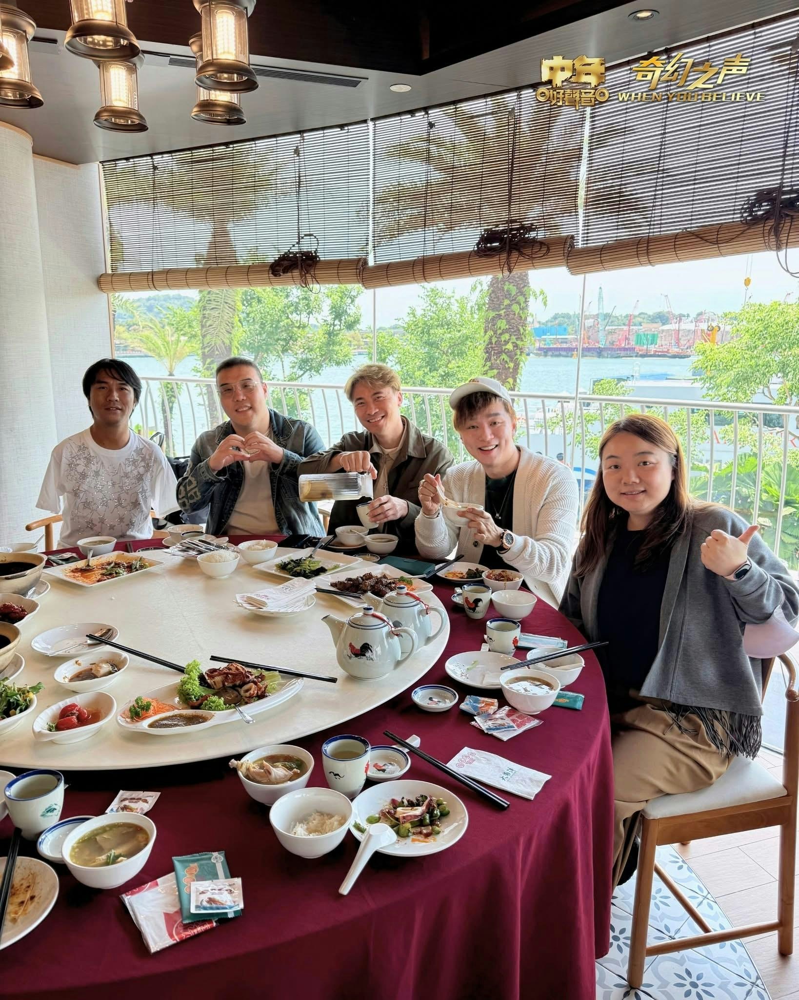 一班《中年好聲音》家族在台前勁歌熱舞,台下老友鬼鬼,演出前一同享受新加坡美食。(公關提供)