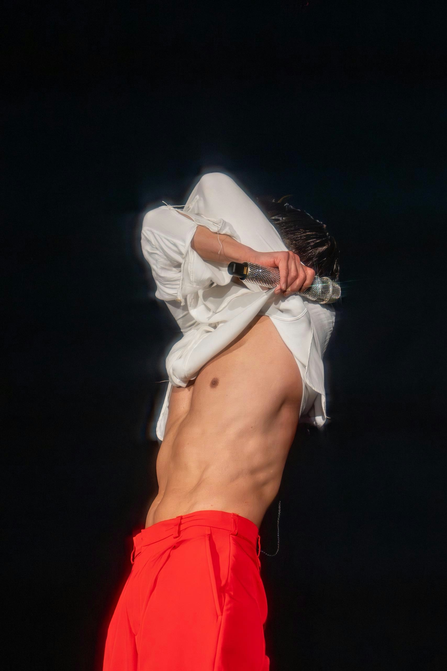 郭富城掀起上衣,大秀健碩胸肌與清晰腹肌線條,全場瞬間陷入瘋狂尖叫。(官方圖片)