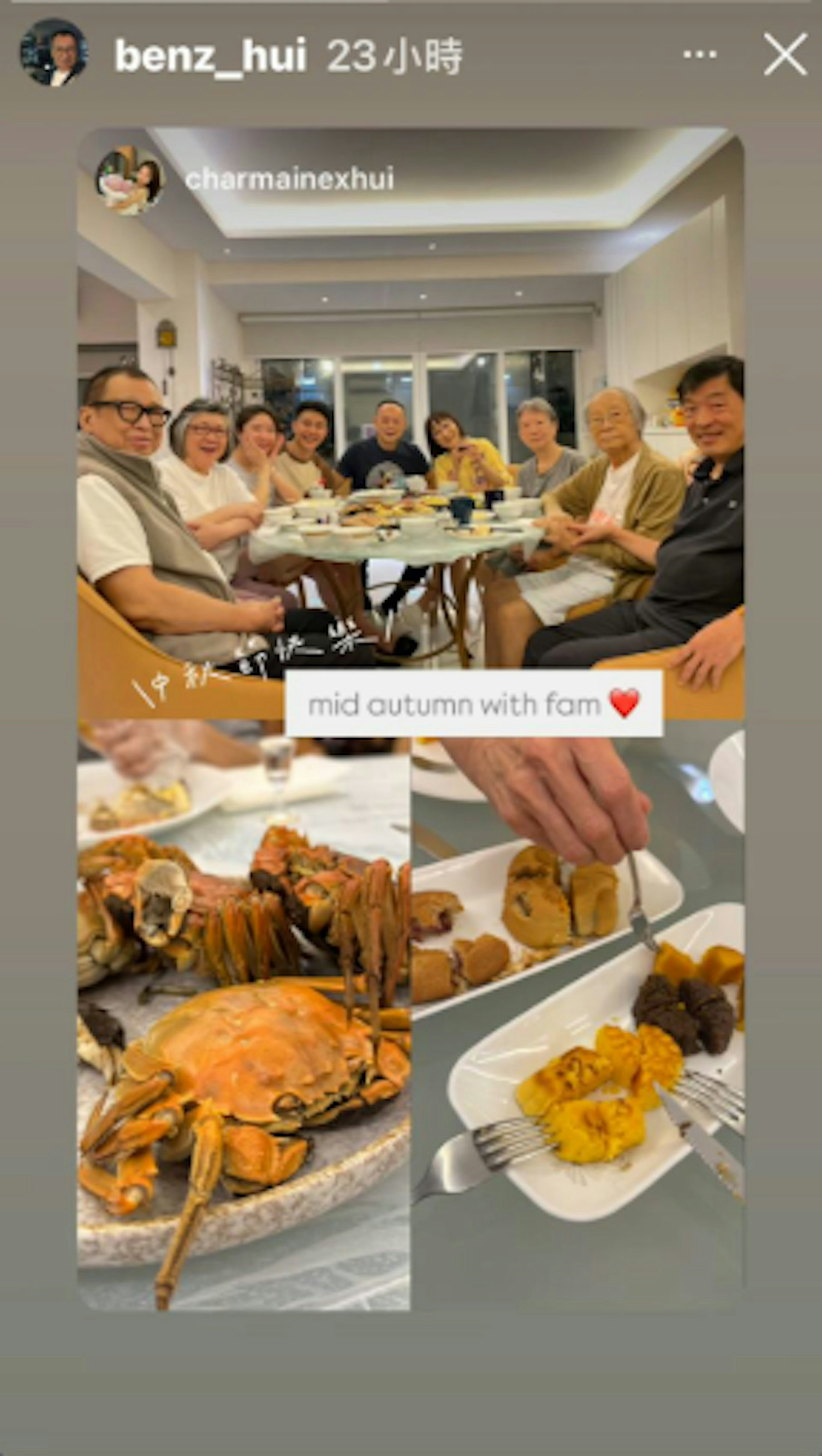 許紹雄亦有轉發大合照,一家人中秋相聚食大閘蟹,好溫馨。(ig@benz_hui)