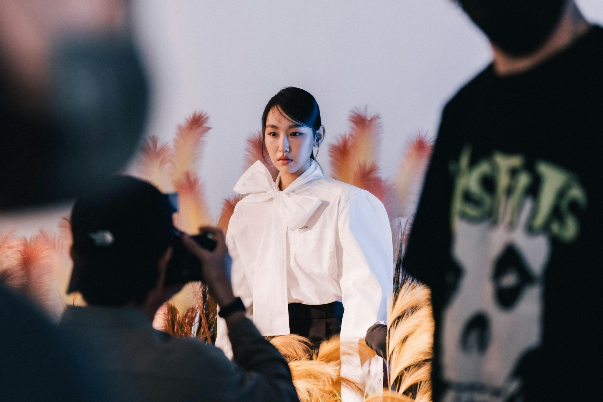 設計師及攝影團隊於現場set 了一個人造田實景給GIGI拍照,一到場她已非常驚訝,馬上跳進去,「嘩,好真。有泥土添!」摸著芒草她又搞笑道,「好似摸貓貓,哈哈。」玩得非常開心。