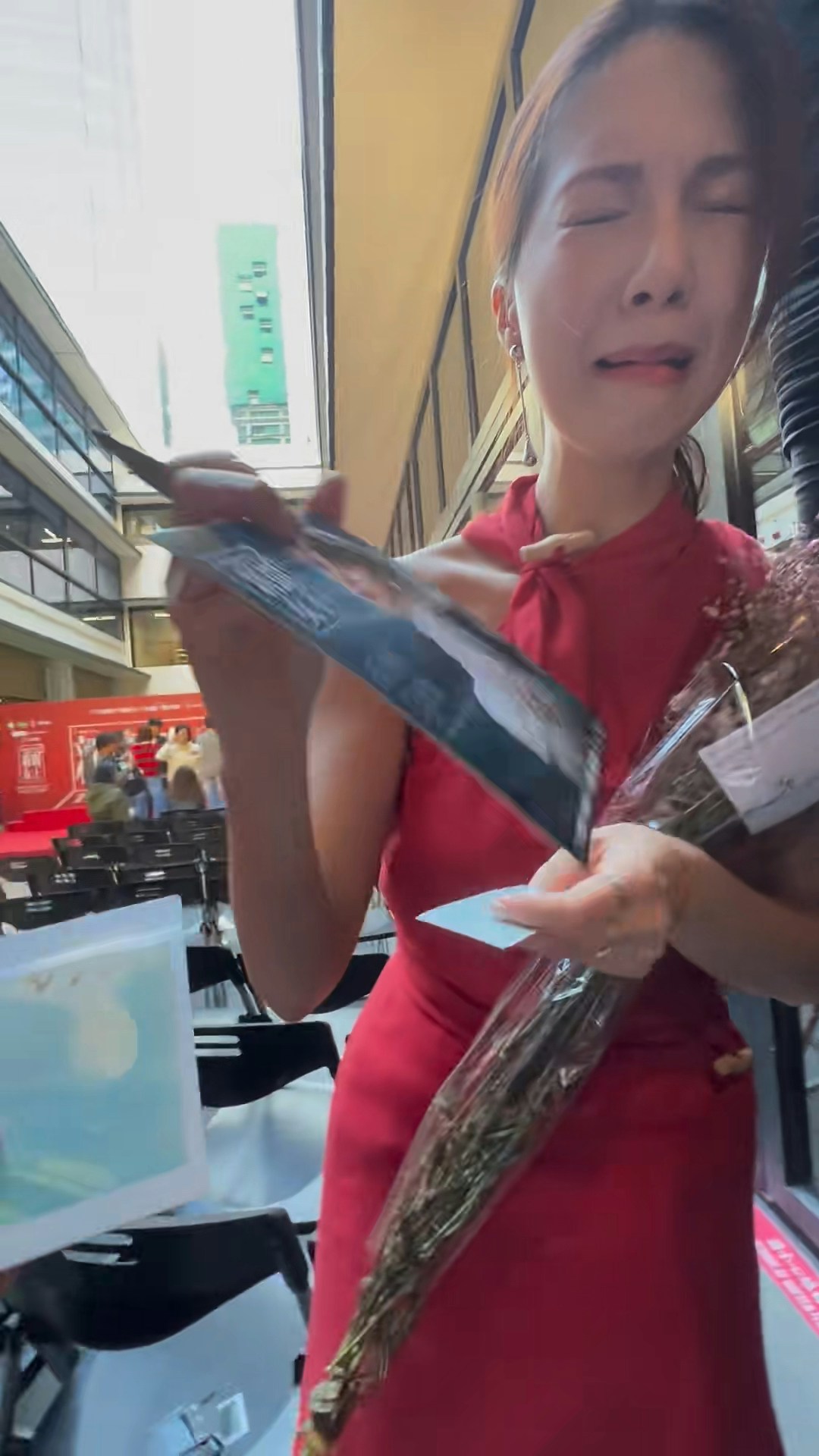 粉絲疑似見到偶像太過興奮,向陳曉華遞上一張簽名相後,突然懷疑自己拿錯了照片,顯得相當慌張。(小紅書截圖)
