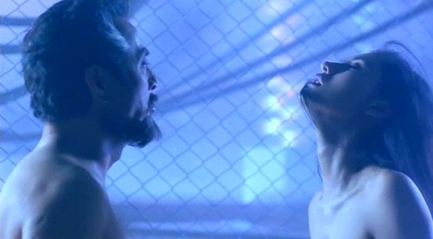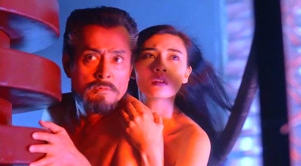 仲代達矢於《妖獸都市》中與李嘉欣赤膊上演一段療傷戲份。(《妖獸都市》電影劇照)