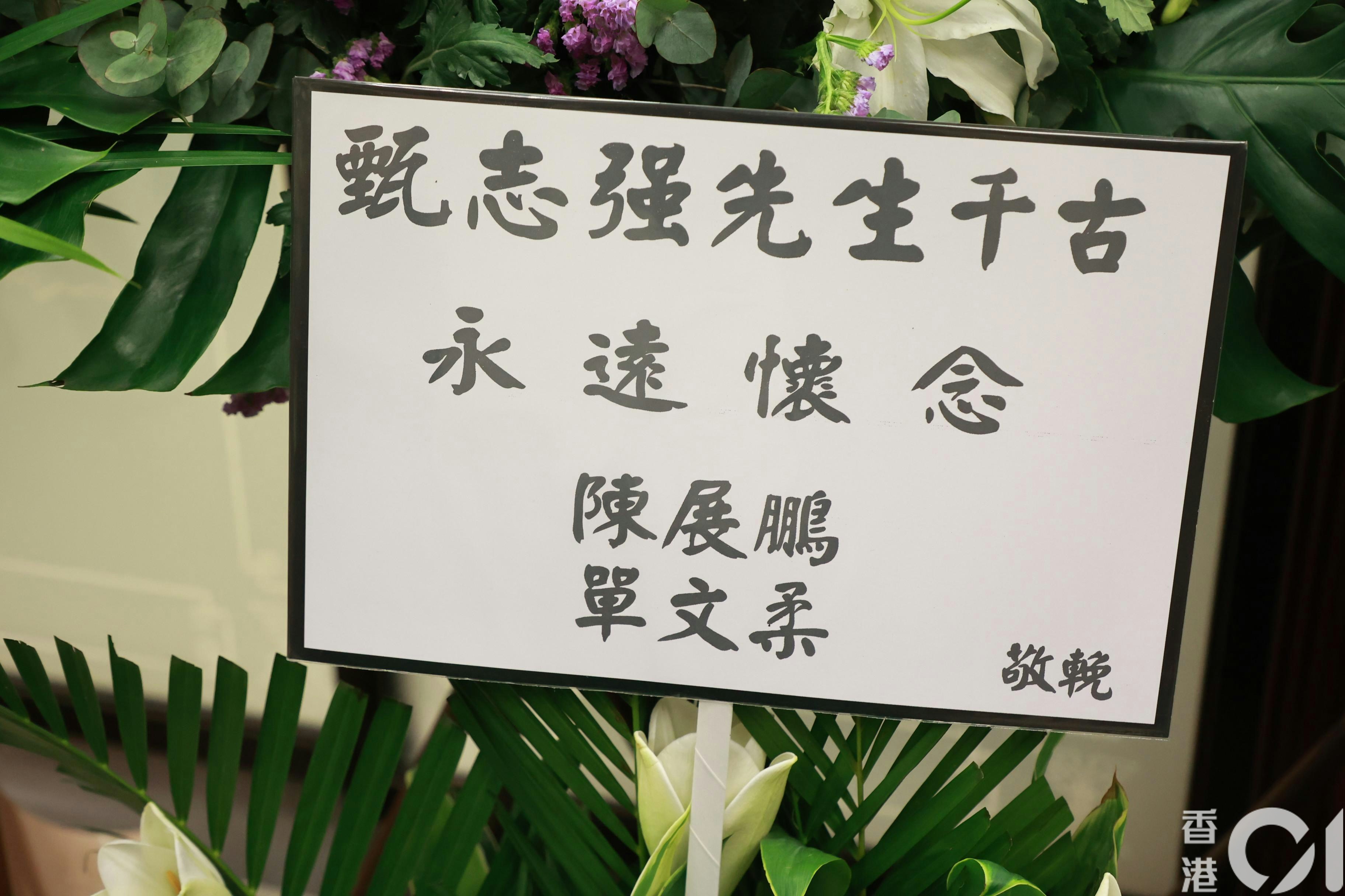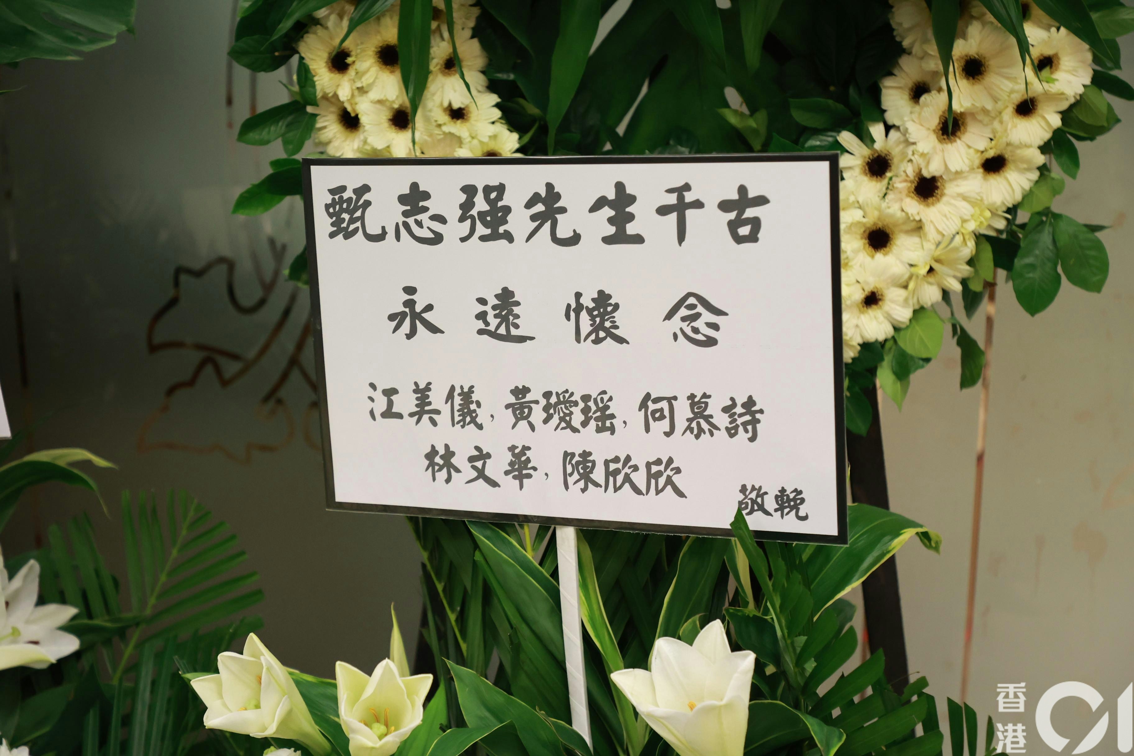 生前圈中好友送花牌悼念,其中包括呂頌賢夫婦、江美儀、劉錫賢、吳浣儀、曾偉明、區永權、楊紹雄、張文慈、鄧英敏、王俊棠、陳榮竣夫婦、肥媽、顏千汶、黃文標、苑瓊丹、陳展鵬夫婦、姜皓文夫婦、尹揚明、黑妹(李麗霞)、黎瑞恩、任達華、蘇志威夫婦、楊玉梅等等,花海一片,足見其不止受觀眾喜愛,在圈中也是人緣極佳。