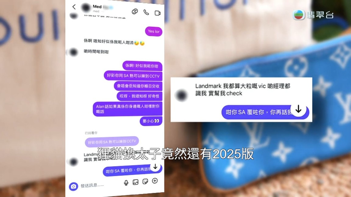 「包包騙徒」Med假裝自己有限量版手袋,再魚目混珠賣出A貨手袋來圖利,完全是「貍貓換太子」。Med約張太於中環一商場的貴賓房交收,所以不疑有詐,其後,張太想手袋更保值,於是拿去專門店為其做鑑定,結果才發現自己被騙,買了一個A貨回來。張太向Med興師問罪,Med當然不會承認,還把責任推卸掉,說是有人把手袋「調包」,自己完全不知情。Med得手後,當然是消失得無影無蹤,張太再找他時已經連絡不上。