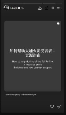 大埔宏福苑周三 (26日) 五級沖天大火,造成逾百人傷亡,災情嚴重,全港哀悼。演藝界亦有不少熱心人士伸出援手出錢出力,為是次火災捐款至不同的組織,務求早日幫災民重建家園,體現出人間有情。然而,在眾多藝人表現出對災情的深切關心並以實際行動施以援助之際,近年移居台灣的余文樂卻因為一則IG貼文引發爭議。