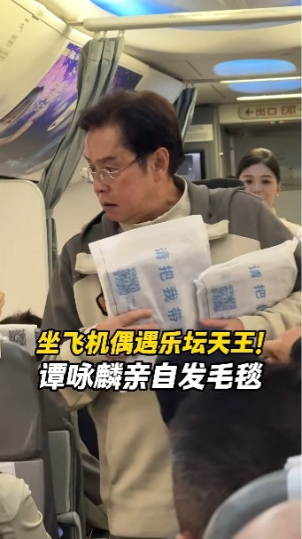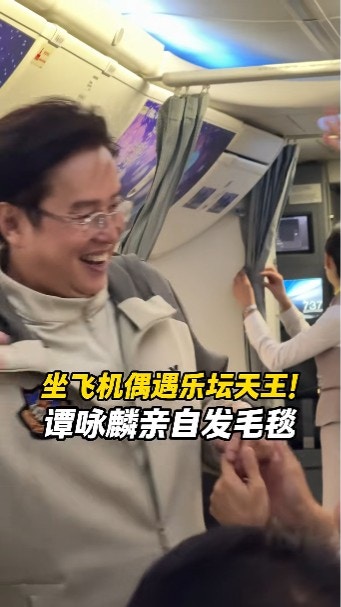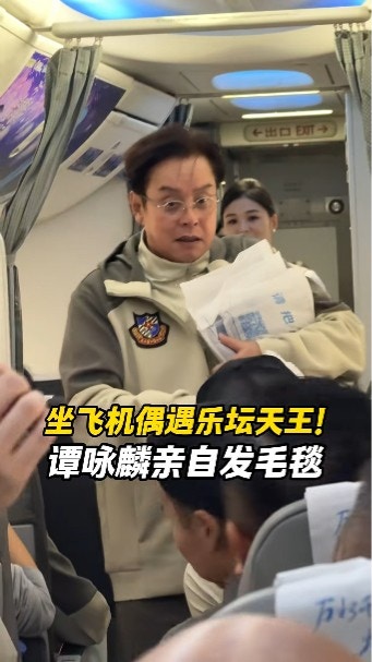 另外又有網民分享了同日與明星足球隊乘搭同一班機的經歷,更親眼目睹和拍下譚詠麟在機上的超暖心舉動,並發文寫道「太幸運了!坐飛機偶遇樂壇天王!譚詠麟譚校長親自發毛毯!#香港明星足球隊 #譚詠麟 #譚校長 #譚詠麟演唱會」,竟然獲天王巨星為自己服務,真是太幸福了。從影片中可見,譚詠麟在客機走廊上拿住多包毛毯,笑容滿面地派給乘客,估計是譚詠麟主動向空姐要求為乘客派發毛毯,相信從來沒有巨星這樣做過。