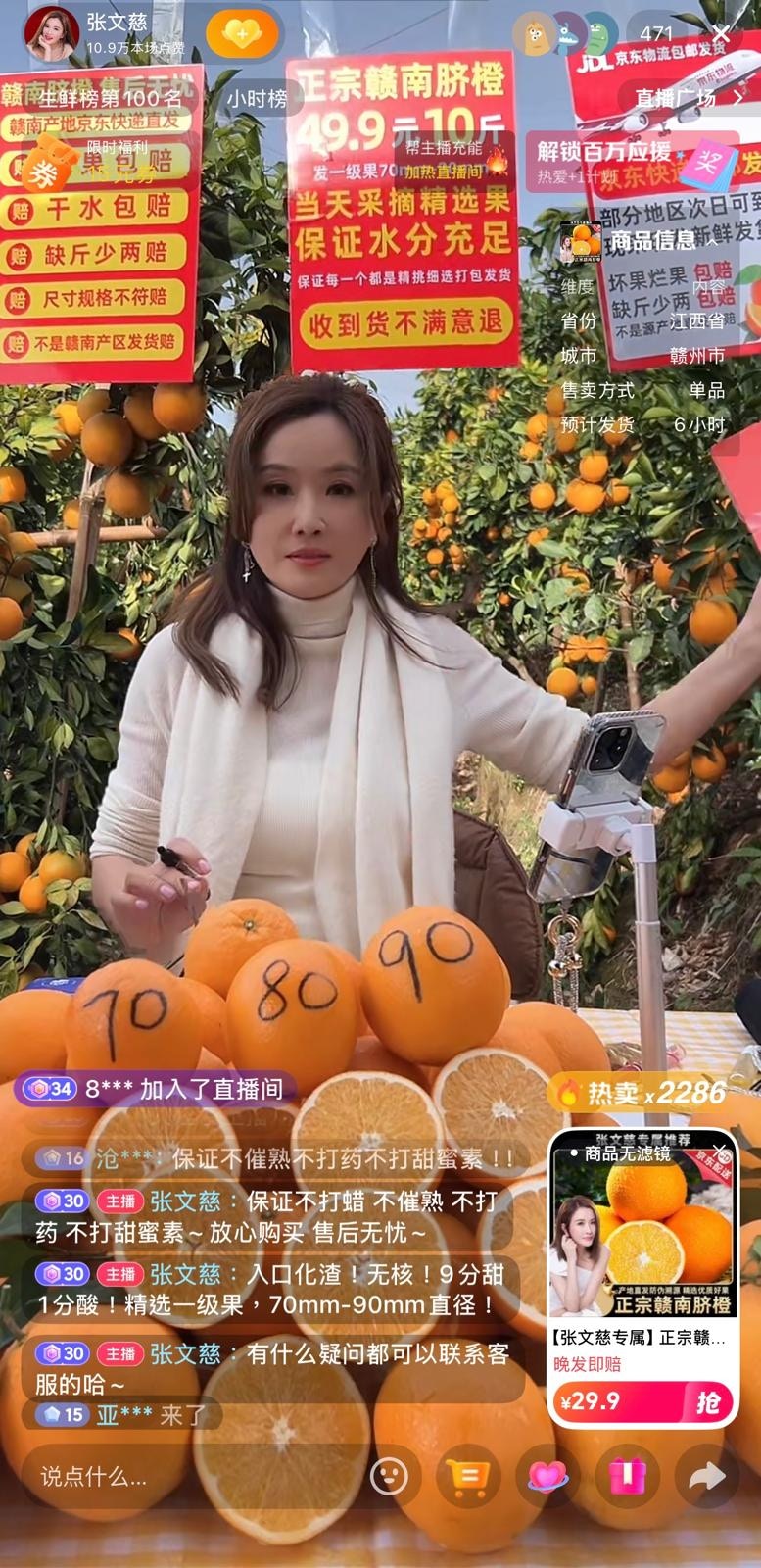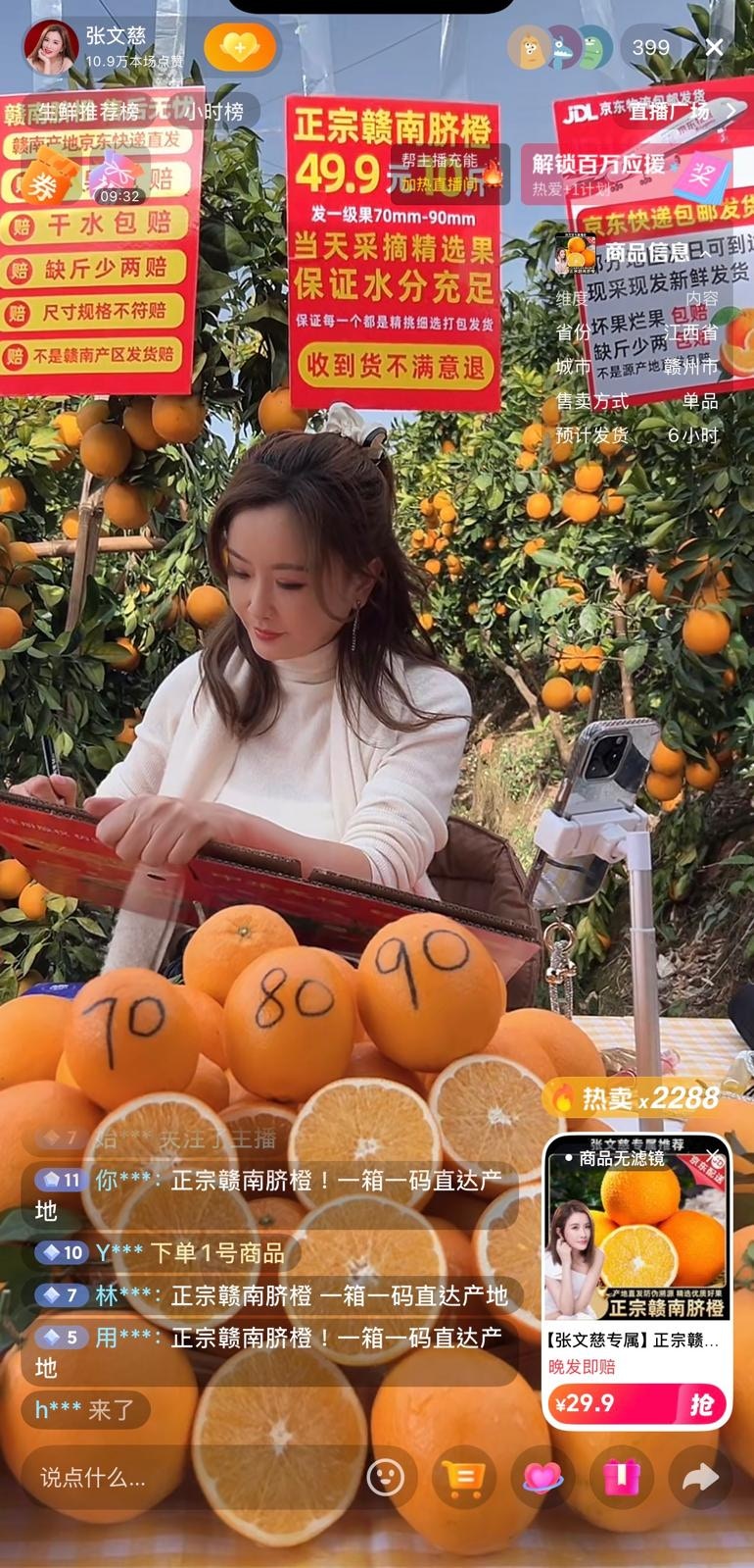 張文慈深入果園直播,親力親為為網友介紹贛州臍