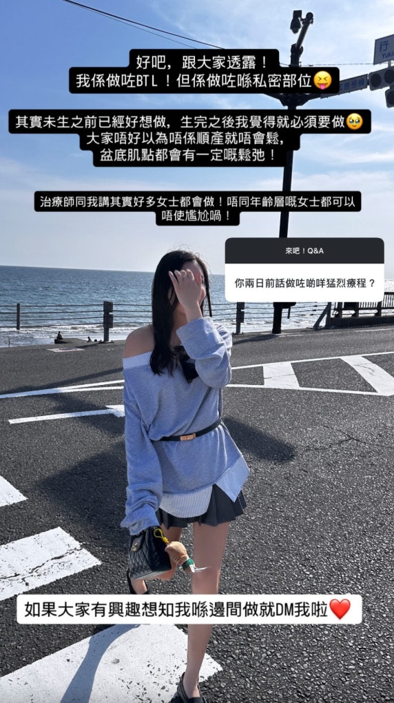 早前陳詩欣在IG大玩「你問我答」,大方承認自己近期針對私密部位做了「BTL」:「其實未生之前已經好想做,生完之後我覺得就必須要做,大家唔好以為唔係順產就唔會鬆,盆底肌點都會有一定嘅鬆弛,治療師同我講好多女士都會做!唔同年齡層嘅女士都可以,唔使尷尬喎!」不過其後傳媒報道時就指陳詩欣做了「收陰手術」,掀起熱議,對此,陳詩欣日前就撰長文激動澄清:「過去兩日,因為一則並不完全屬實嘅報導,我嘅社交平台湧入大量留言,當中有擔心、亦有不明所以嘅攻擊同嘲笑。老實說,呢段時間我嘅心理壓力好大,甚至有啲不安同無力。」並強調:「我希望可以再次清楚地講一次,報導所提及嘅『手術』並唔屬實,我做嘅只係一個簡單而常見嘅產後護理療程,整個過程非常安全。事件被誇大描述,確實令我感到錯愕同受傷。唔係因為我做咗啲咩,而係因為好多評論都係基於誤解。抱歉令身邊好多人有所誤會同擔心,亦帶嚟好多不必要嘅揣測。」
