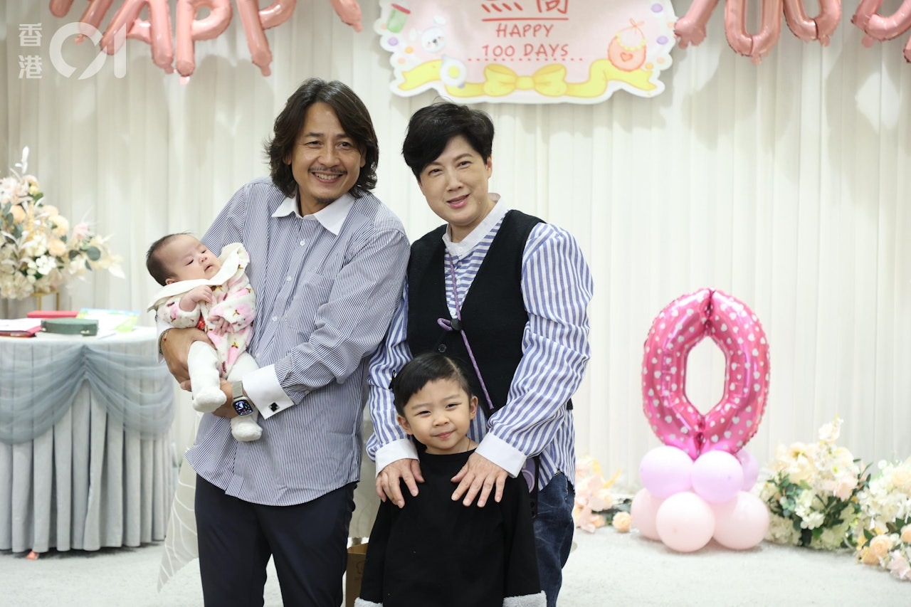 黃澤鋒和太太陳麗麗昨晚(23日)為二女舉行百日宴,一家四口幸福美滿。(葉志明 攝)
