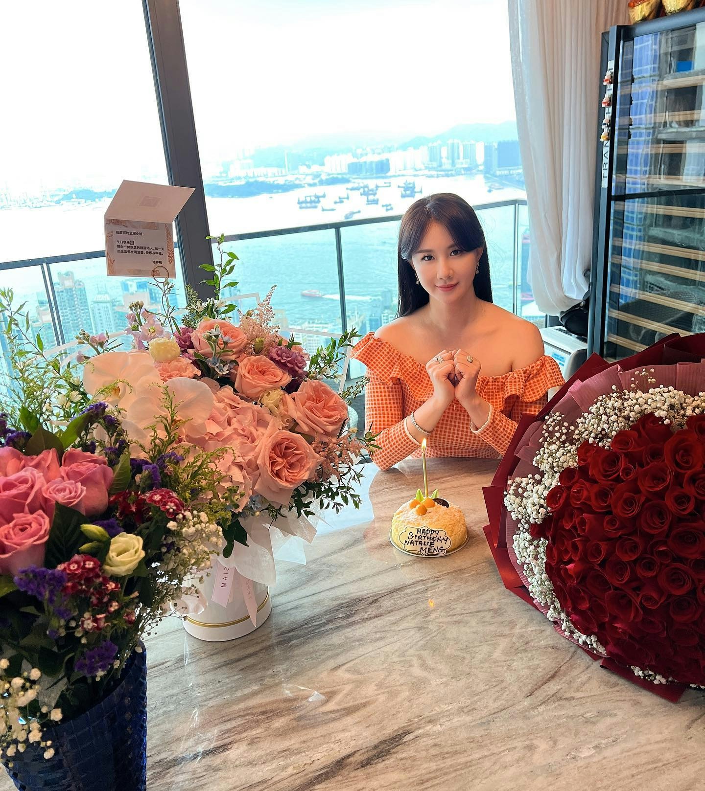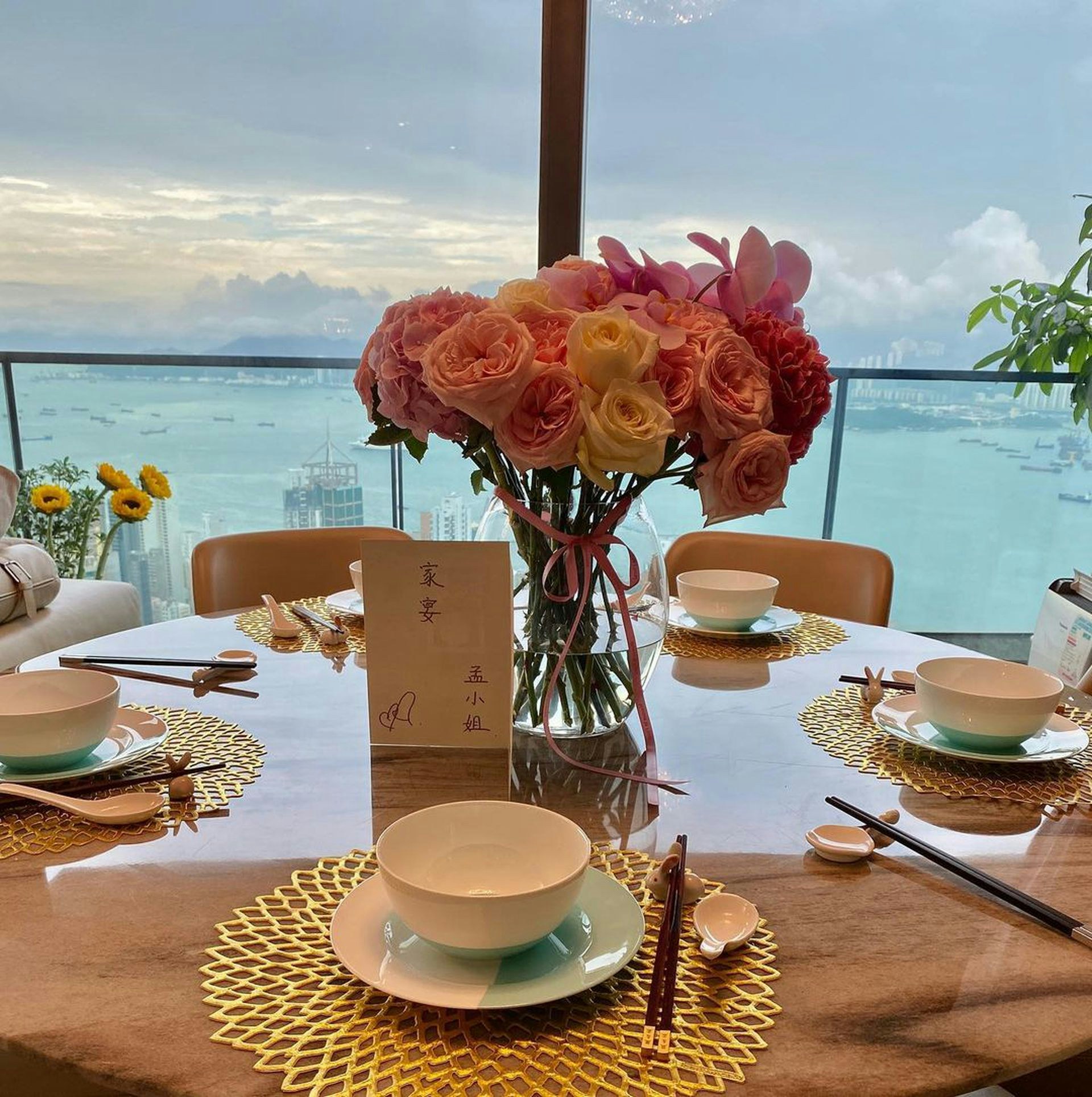 出席中美電影節。(IG@nataliemeng) 孟瑤2008年與內地富二代老公周磊結婚,獲老爺送贈位於北京朝陽區的三千呎豪宅,2019年離婚後「回流」香港發展,更進駐曾有「亞洲樓王」之稱的西半山豪宅天匯。近日孟瑤返港,她在IG限時動態上載了一段短片,並寫道:「I love my home in HK.」片中所見,豪宅居高臨下,飽覽無敵大海景,景觀相當開揚!其實孟瑤過往亦曾曬出豪宅內部的照片,可見客廳空間闊落,設有大露台,飯廳擺放了一張大圓枱,可設宴招待親朋好友!