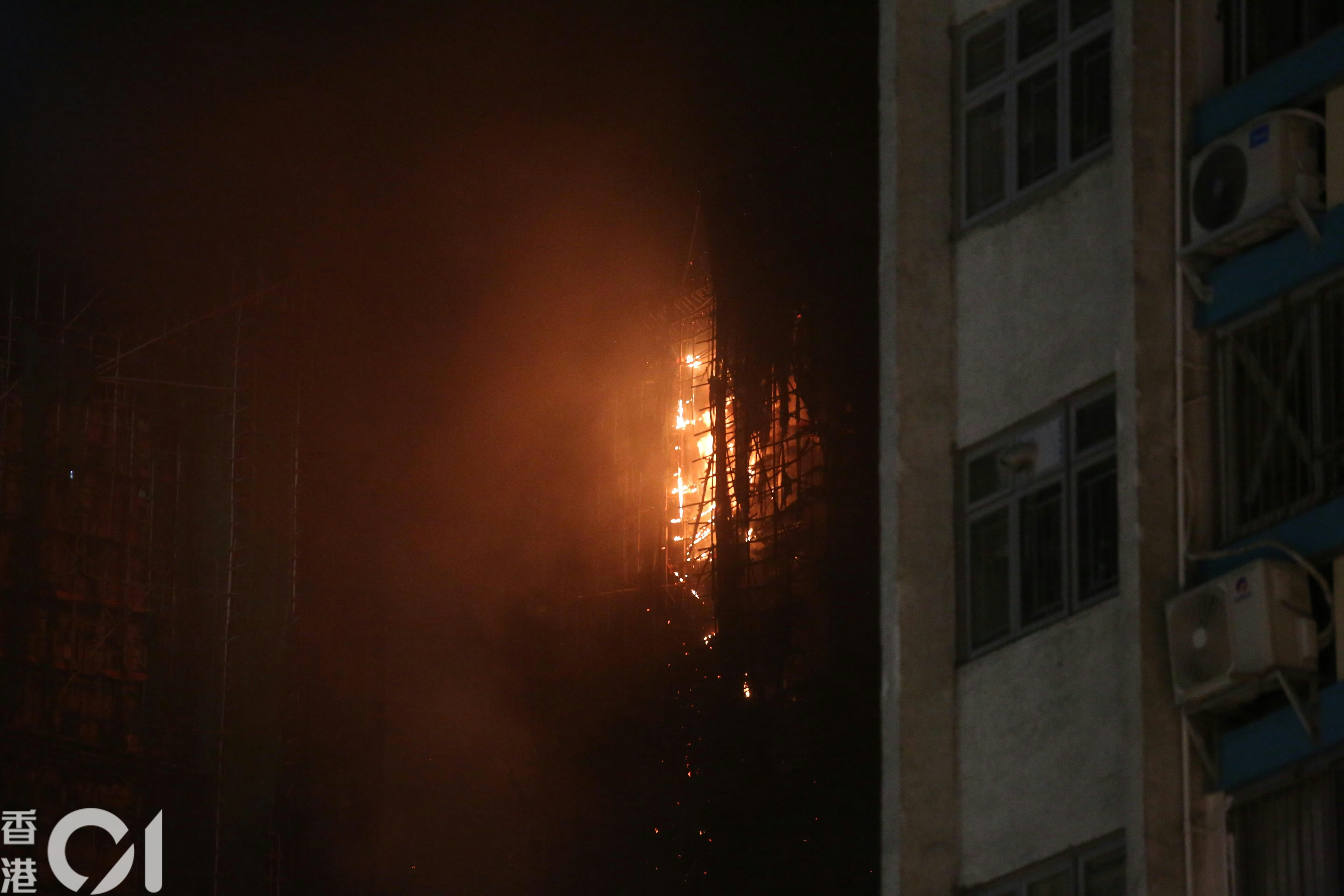大埔宏福苑五級火,救援行動仍然持續。(陳永武攝)