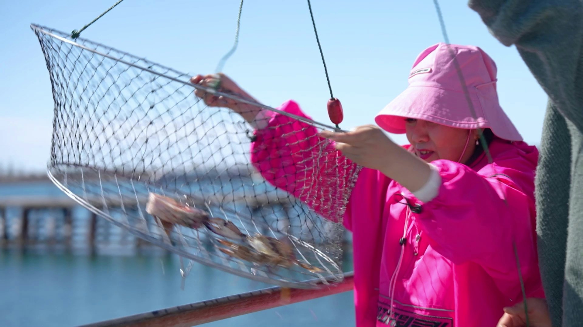 阿姐體驗釣蟹時,好似小朋友咁開心。(官方提供圖片)