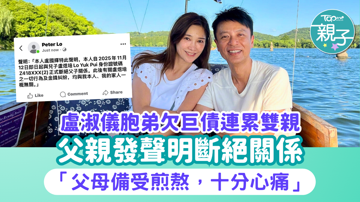▲盧淑儀弟弟捲債務風波,父親發聲明割席:備受煎熬十分心痛。