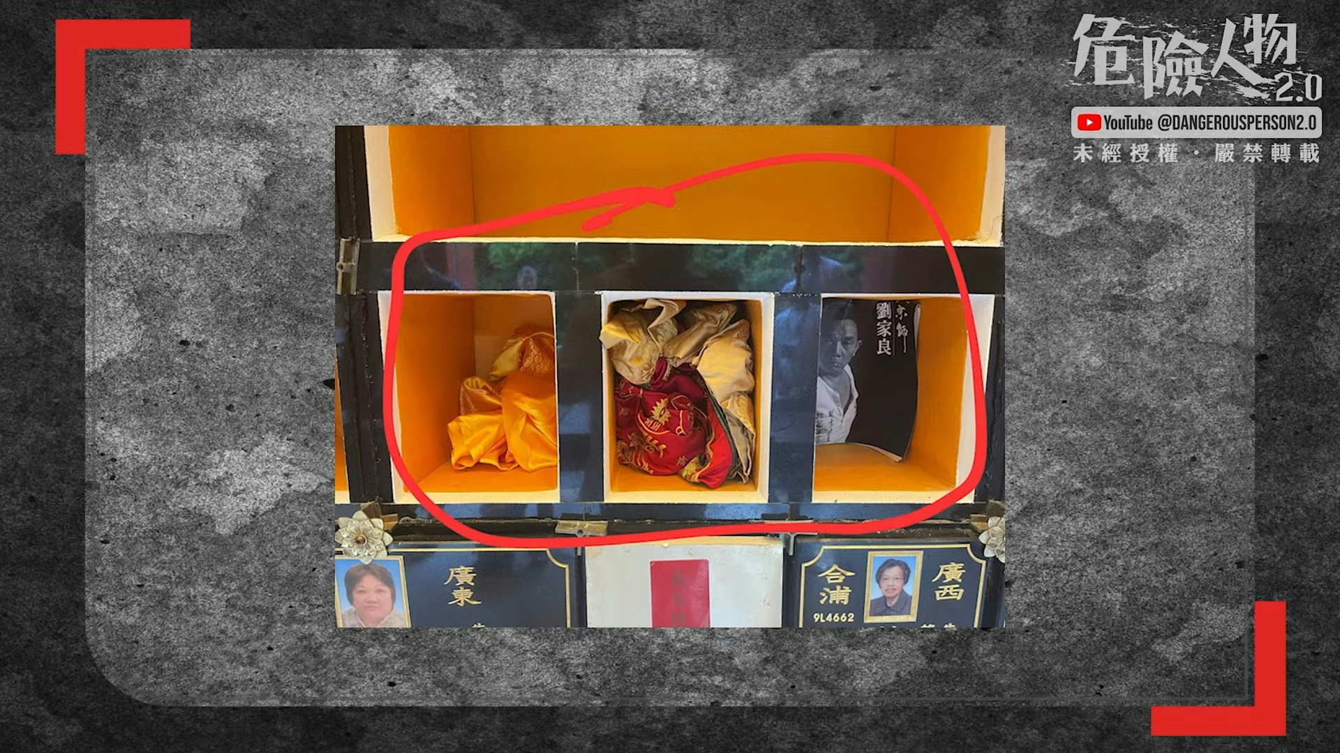 原本包著骨灰盒的經被被人揉作一團塞回骨灰龕內。(危險人物2.0截圖)