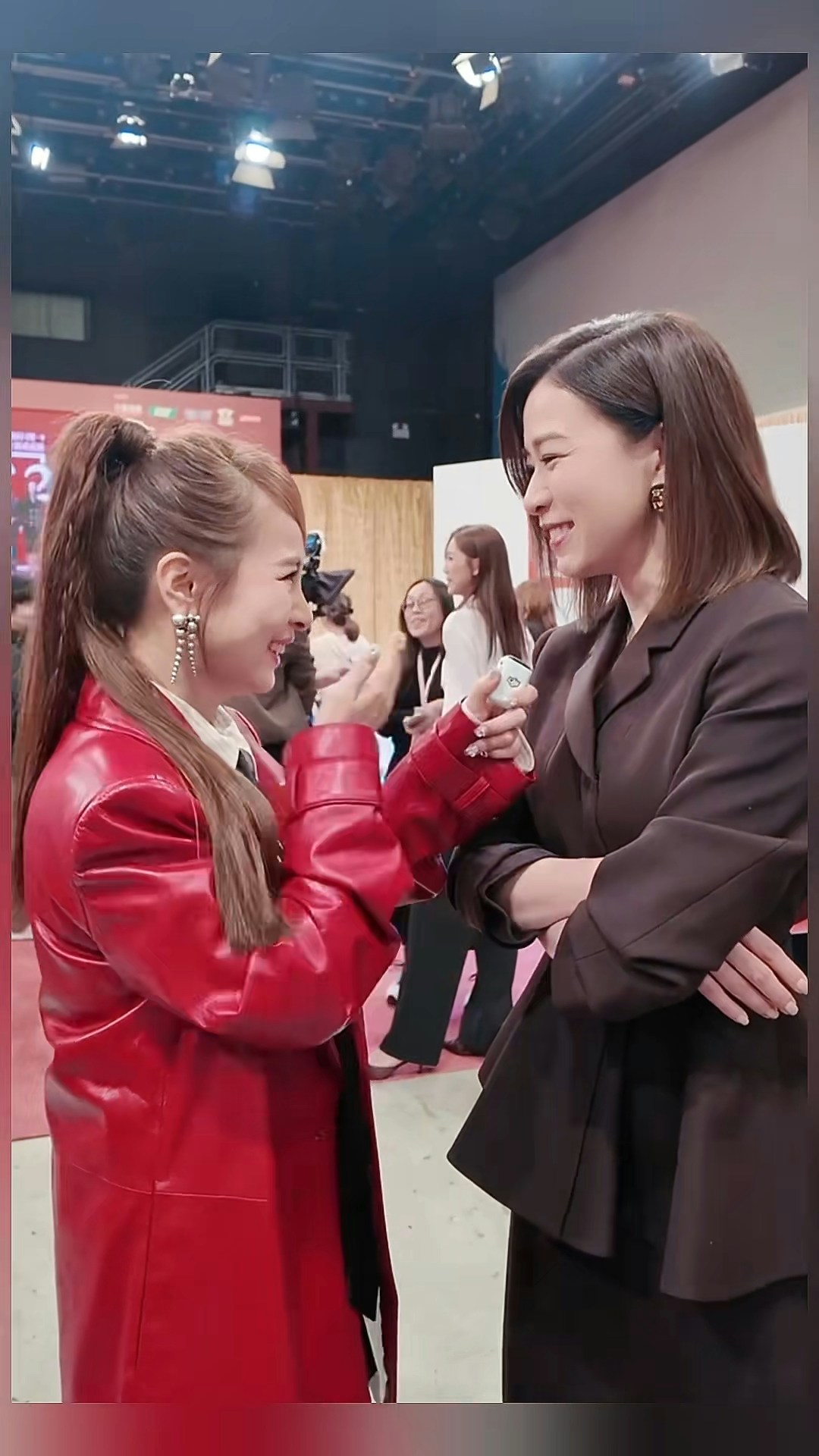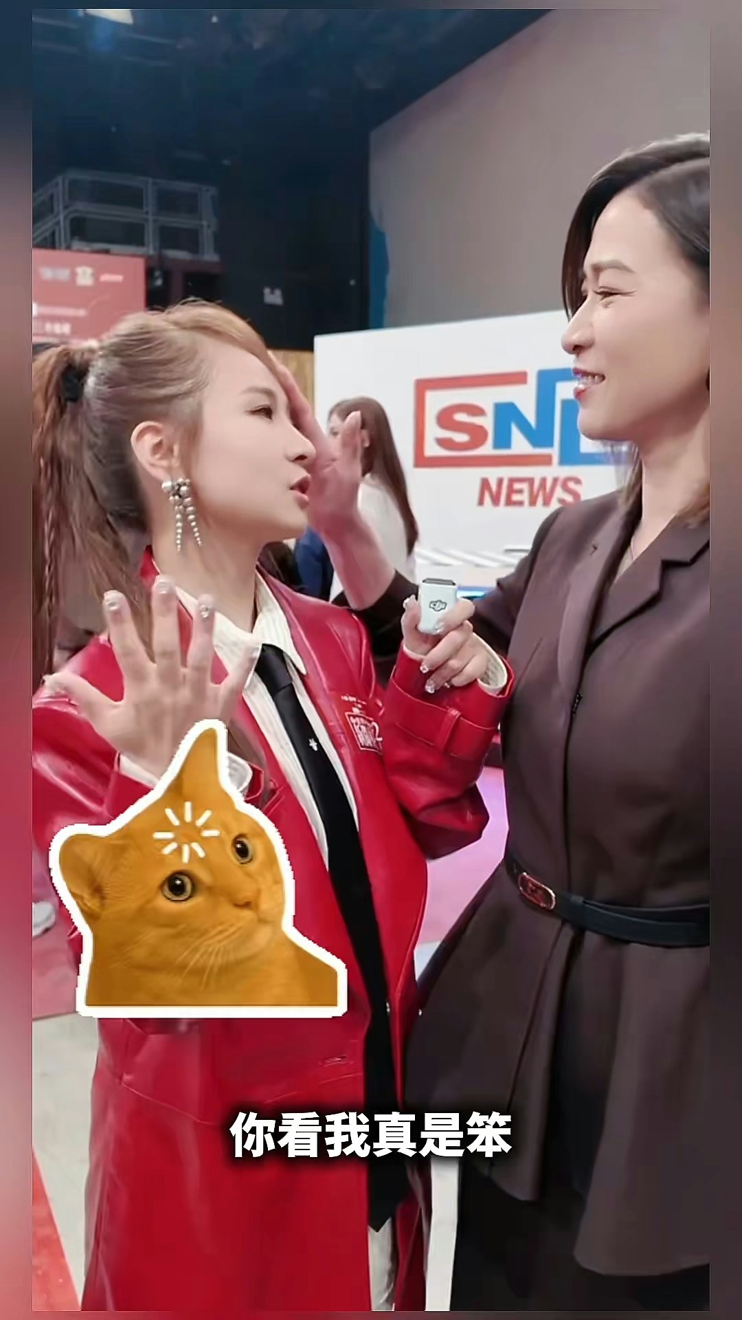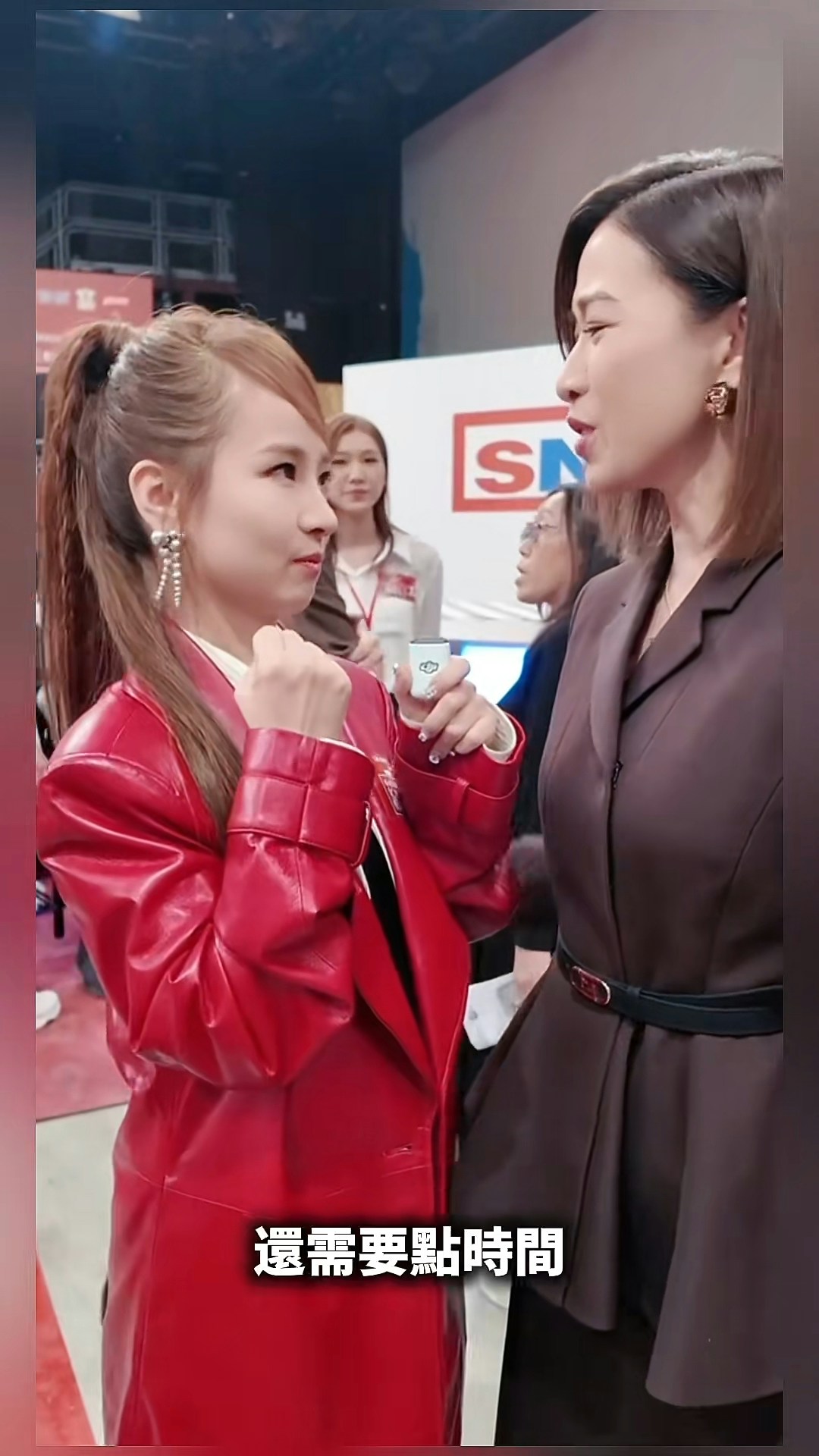 獲得視后讚賞的谷婭溦開心到突然「出戲」,阿佘見狀更輕拍她的頭笑說:「你睇吓,仲需要啲時間啊,加油!」這段互動影片分享到社交平台後,網民大讚兩人喜感十足,互動既霸氣又可愛。