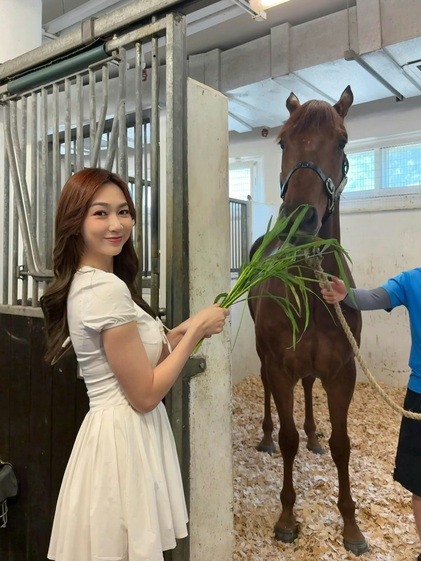 愛駒「飛馬座」出戰,黃嘉雯上載為「飛馬座」打氣的照片並留言:「人馬座眼中的飛馬座,Let’s gooooo」黃嘉雯以白色連身裙上陣,仙氣滿滿,黃嘉雯除了餵「飛馬座」食草外,還摸摸牠的頭為其打氣。
