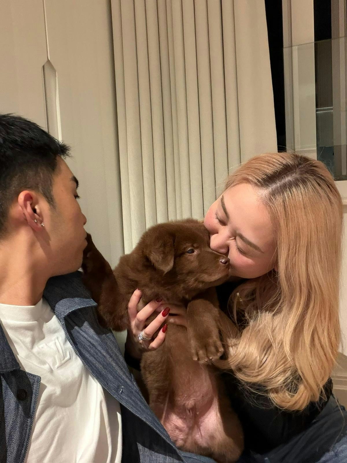 現年31歲的TVB歌手伍富橋(Alvin)與億萬太太梁兆楹(Shirley)結婚三年,日前二人宣布家中添新成員,伍富橋留言: 「一切都係緣份🍃冇錯!我哋又添加咗一位新成員啦🥹多謝 @praylovehk 讓我地遇見🙏🏼確認眼神後,真係愛不釋手❤️」