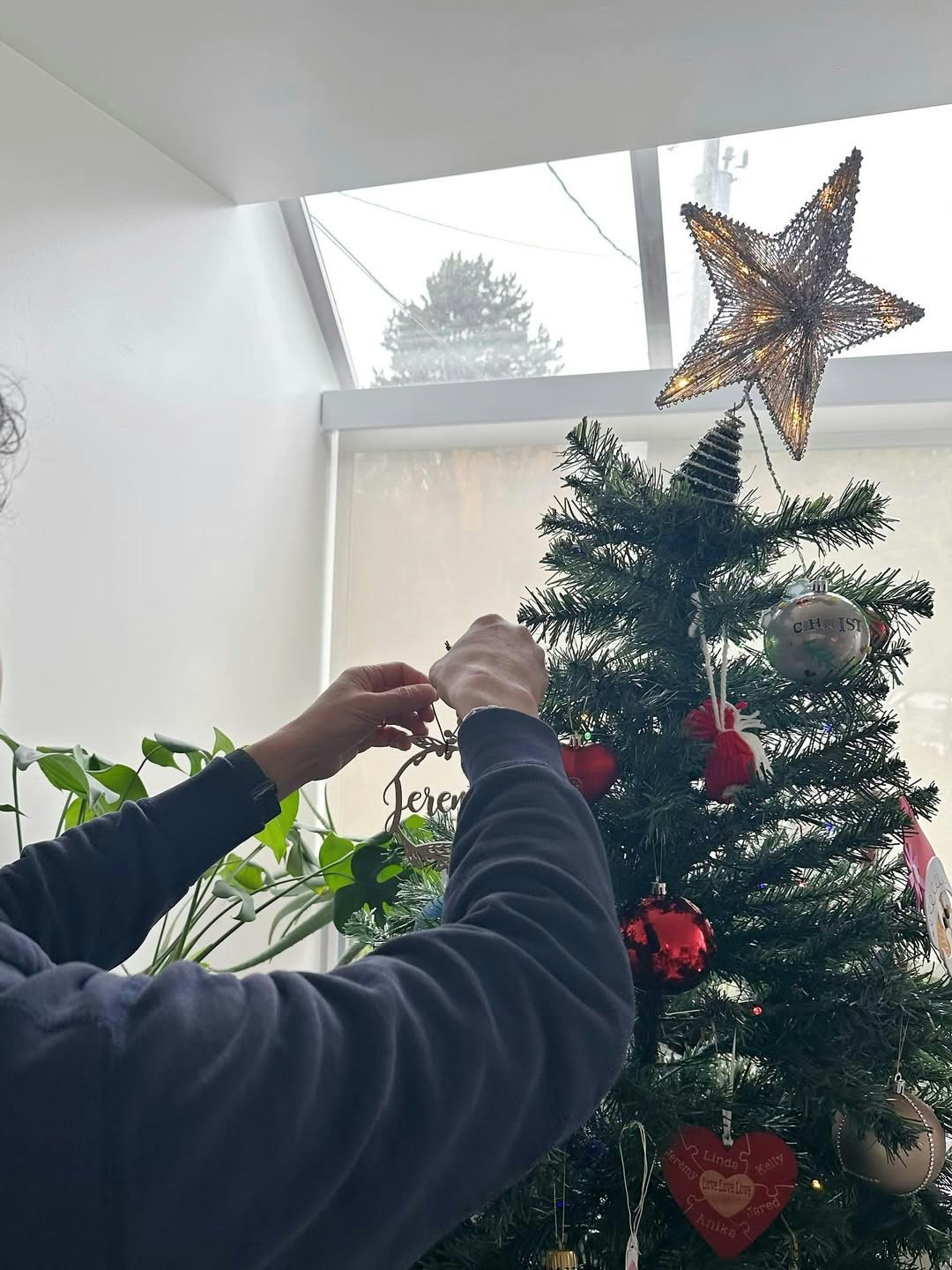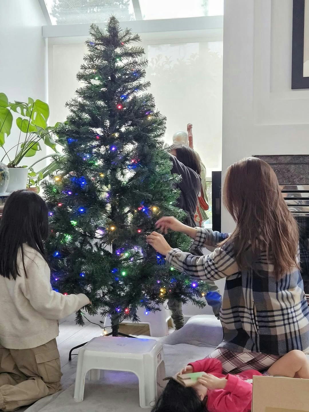 言猶在耳,隨著聖誕節將至,鍾嘉欣再以實際行動闢謠。她今日(17日)於社交平台寫道:「Just a tiny 2-day trip to HK, but my heart feels so full 🧳💗 Now cozying up for Christmas. We’re ready🎄✨(雖然只是短短兩天的香港之旅,但我的心感覺超充實。 現在要舒舒服服地準備過聖誕節了。我們準備好了!)」,並分享多張佈置家居的溫馨照片,展示一家人合力裝飾聖誕樹的過程。雖然丈夫Jeremy沒有正面入鏡,但其中一張相則拍到他在幫手掛上聖誕樹高處的裝飾,網民從其微露的捲髮推測,該人就是鍾嘉欣的老公。