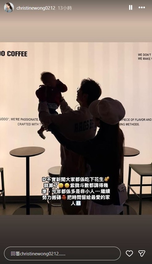 對於太太公司股價的巨大波動,高鈞賢以短訊回覆《香港01》時表示:「佢哋公司上咗NASDAQ(美國納斯達克),股票啲嘢我就唔清楚,佢地公司嚟緊都會有消息公布。」而黃梓漫就在IG限時動態分享一家三口的合照,並留言:「D不實新聞大家都係吃下花生就算了,紫微斗數都講得幾準,今年都係多是非小人…繼續努力搬磚,把時間留給最愛的家人。」