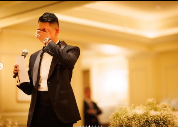 新郎台上致詞感觸落淚。(IG@mariechristinelee)