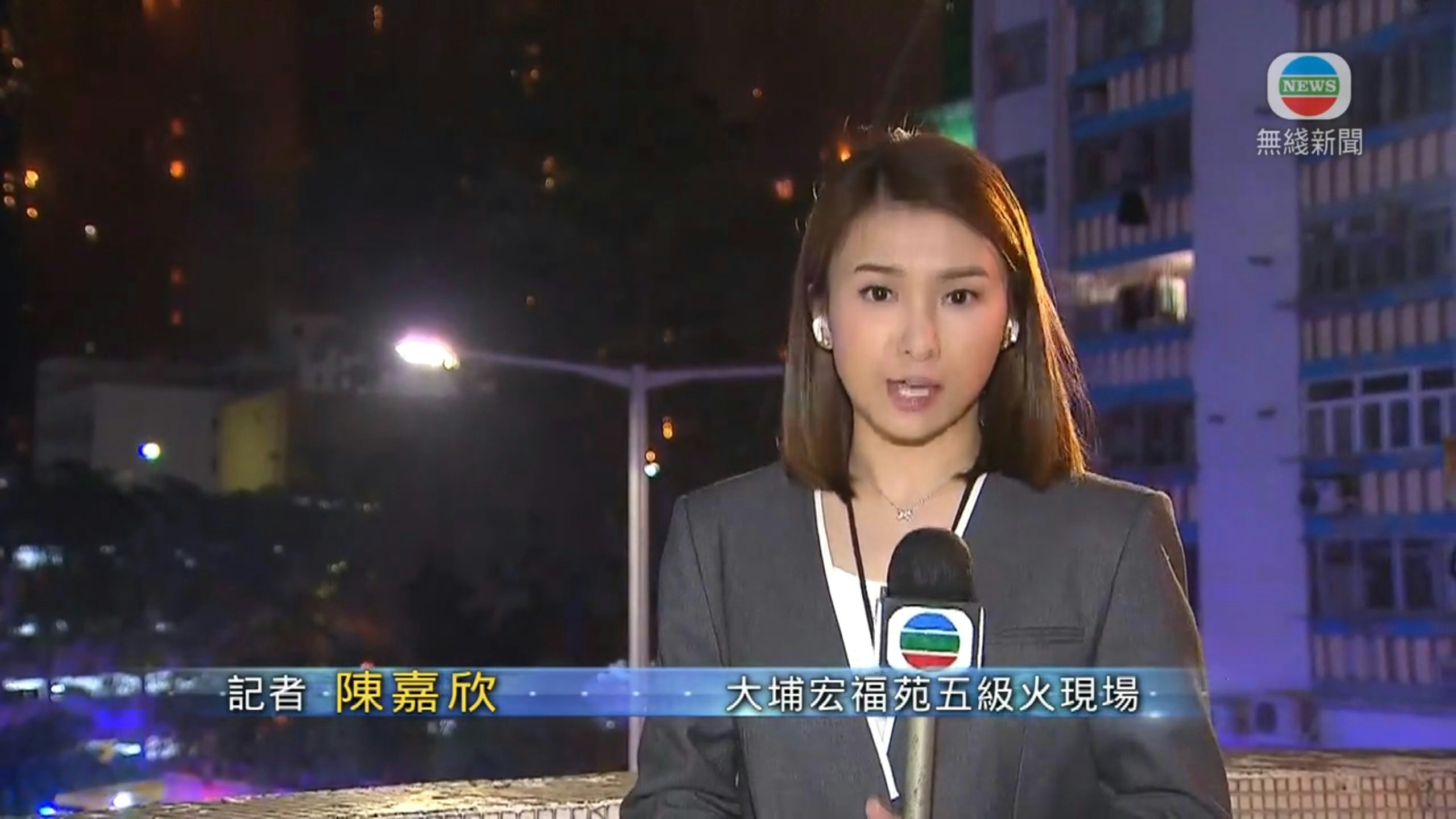 大埔宏福苑五級火警造成多人死傷,大批居民無家可歸,消防員至今仍然在場灌救及搜索。全港市民靠新聞密切關注現場狀況,現場有大批新聞工作者在場守候,當中無綫新聞主播陳嘉欣在報道火災現場消息時,結尾幾句聲音震抖,令大批網民擔心其心情是否被災情影響。