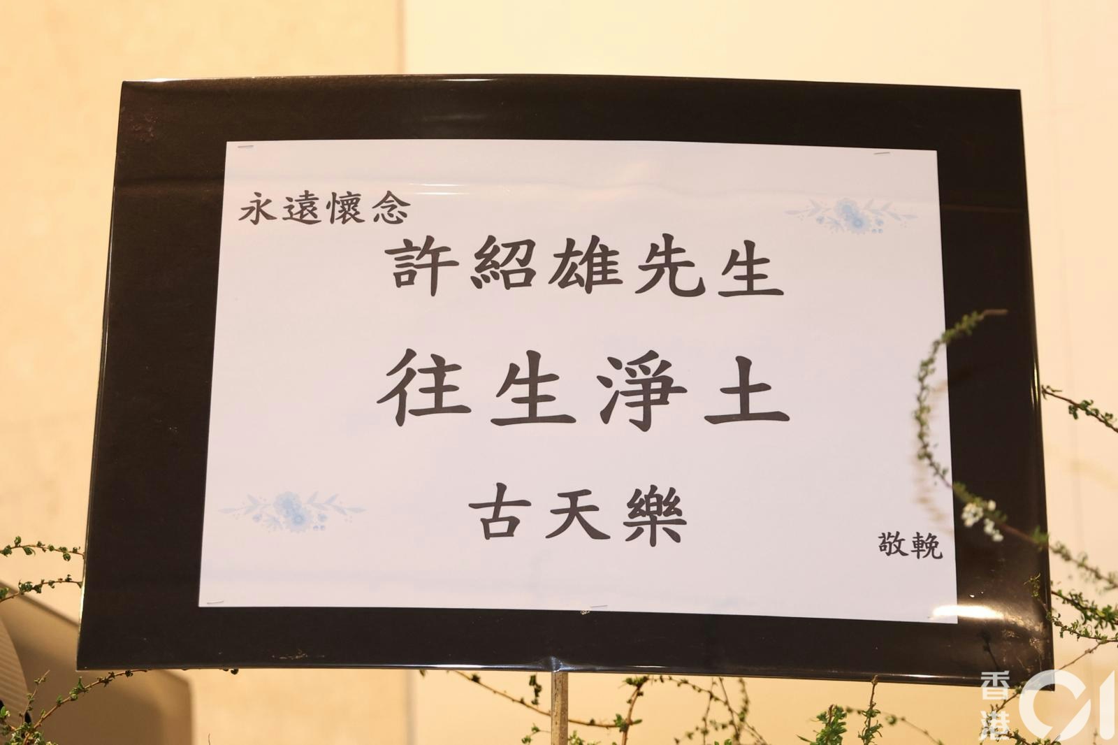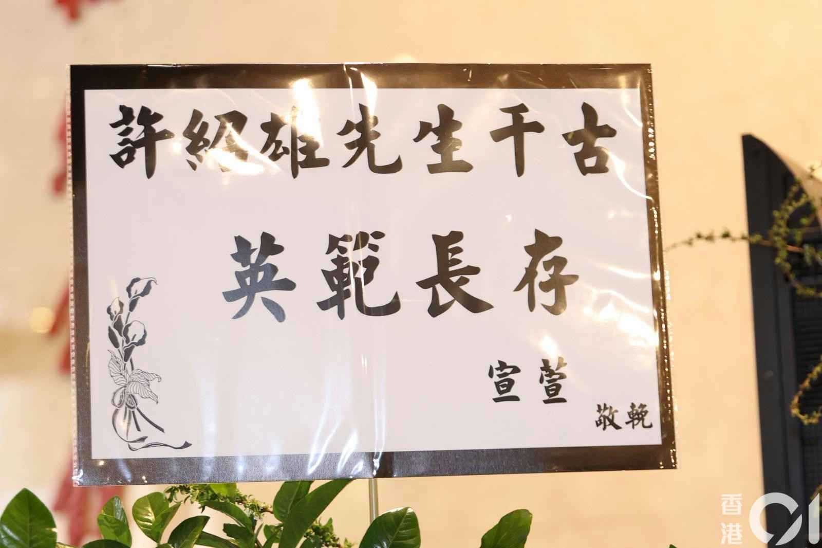 下午2時許許紹雄家人神情哀傷,一早到場打點。靈堂內佈滿鮮花,氣氛莊嚴而肅穆,許紹雄生前人緣極佳,獲不少圈中好友送上花牌,表達深厚情誼,以及無盡懷念。包括有古天樂、林峯、鄭裕玲、吳彥祖、苑瓊丹、宣萱、錢嘉樂、蘇永康等等