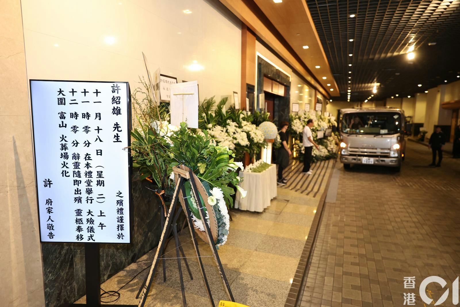 資深演員許紹雄 (Benz雄)今年10月28日不敵癌魔於醫院安詳辭世,享年76歲,其家人於早前已向社會公布喪禮安排,下午4時至5時開放予公眾祭拜,讓大眾有機會向這位德藝雙馨的演員作最後致敬。喪禮今日(17/11)於大圍寶福紀念館地下寶福堂舉行,翌日(18/11)上午則舉行大殮儀式隨即出殯。