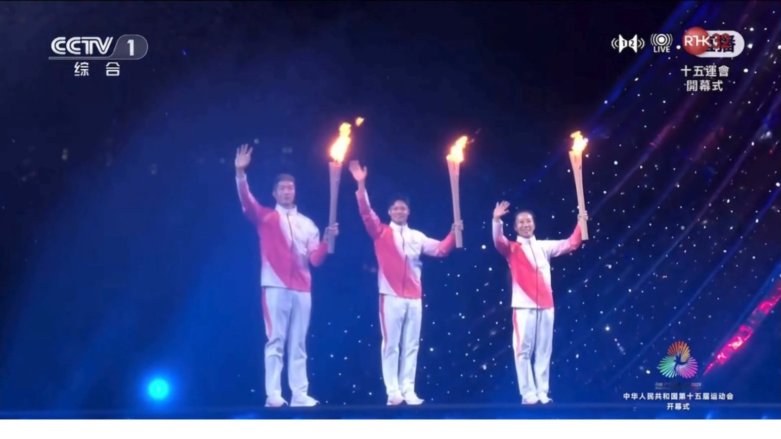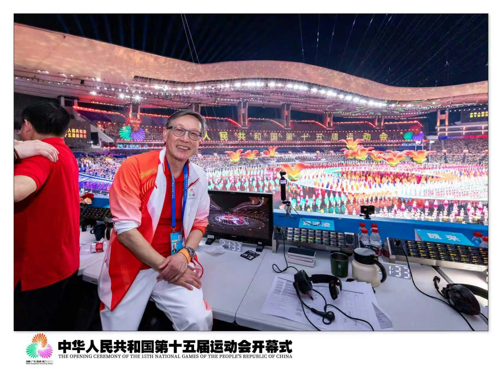 看到最後一棒,見到香港代表張家朗拿住火炬跑上如瀑布般的樓梯,相當有氣勢,但其實都花不少時間準備,最重要是要找防跣物料製作。「道具組一早做了漫長的測試,他們找到一種非常厲害的防滑材料,才能讓這個項目順利完成。到最後三位火炬手,分部是蘇炳添、張家朗、李禕踏水走上樓梯燃點火炬,點起果刻,真是很感動。全場觀眾,包括主席、主席夫人,大家都報以掌聲,好振奮。我再次感到非常榮幸能夠參與全運會。」